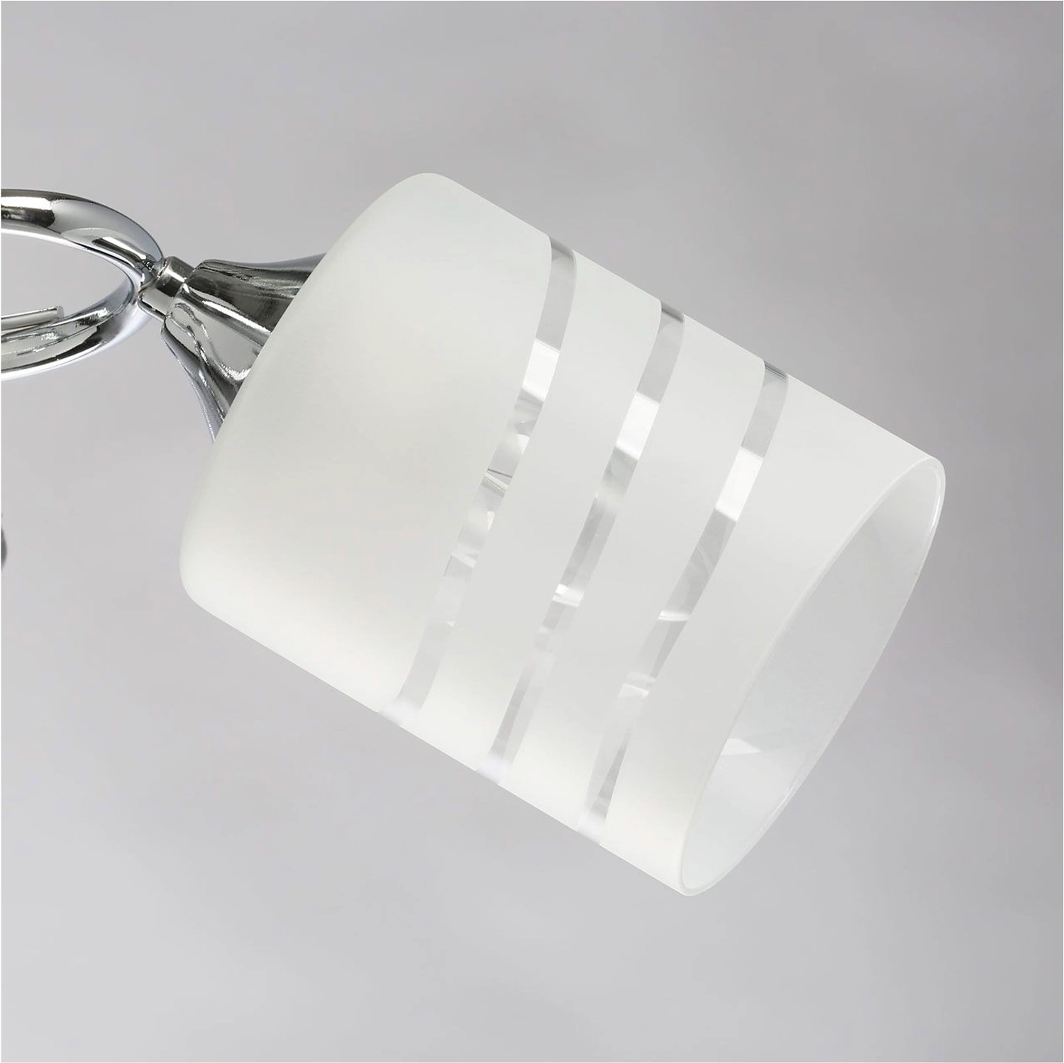 Минималистичный светильник для современных интерьеров. Оригинальный металлический декор цветадобавляет декоративности. Стеклянные плафоны с полосками обеспечивают мягкий световой поток.