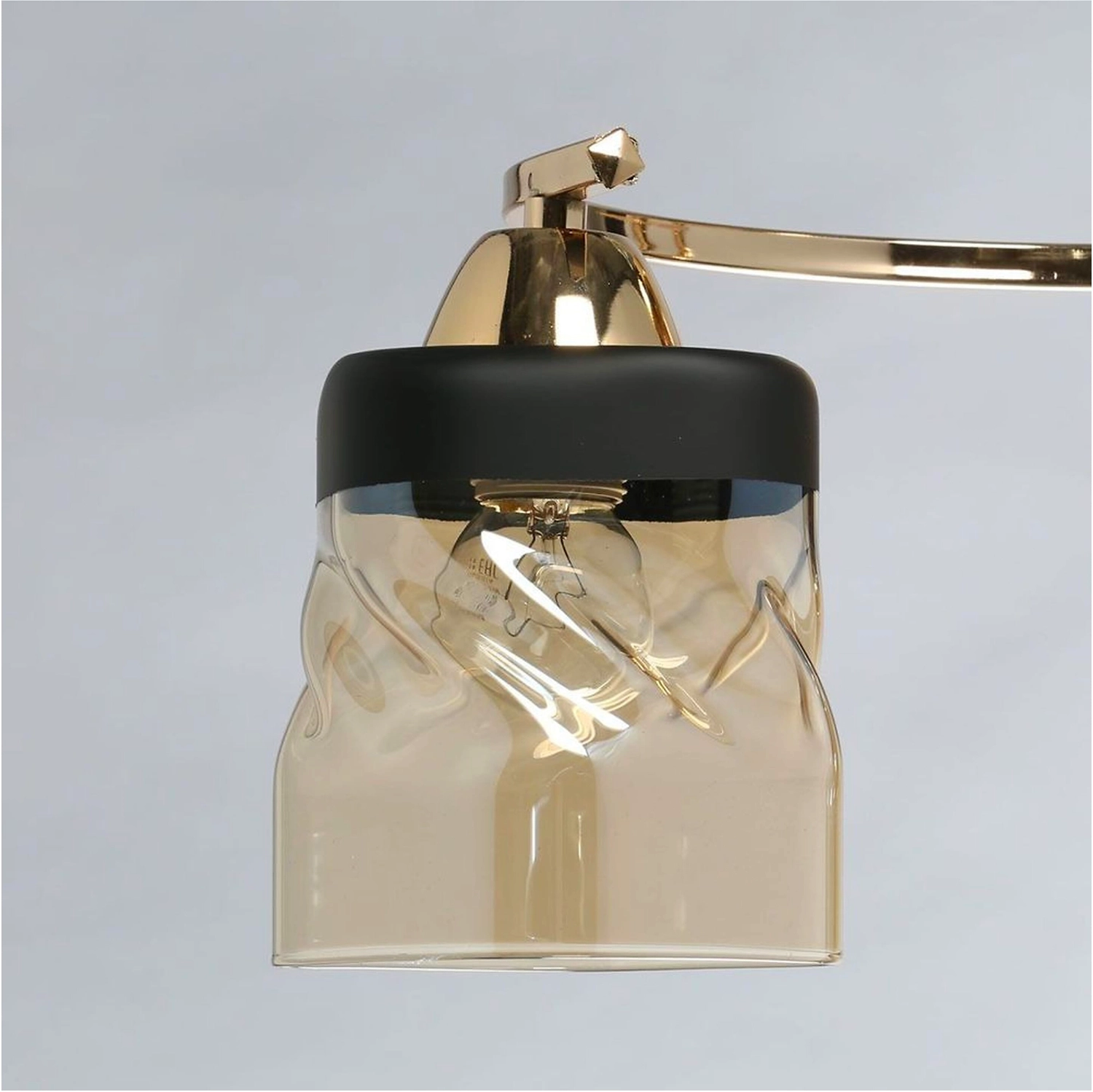 Минималистичный светильник для современных интерьеров. Оригинальный металлический декор цветадобавляет декоративности. Стеклянные плафоны с полосками обеспечивают мягкий световой поток.