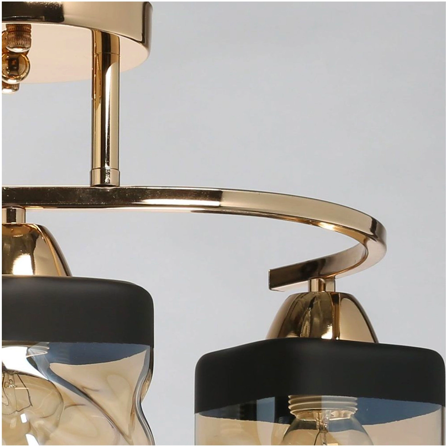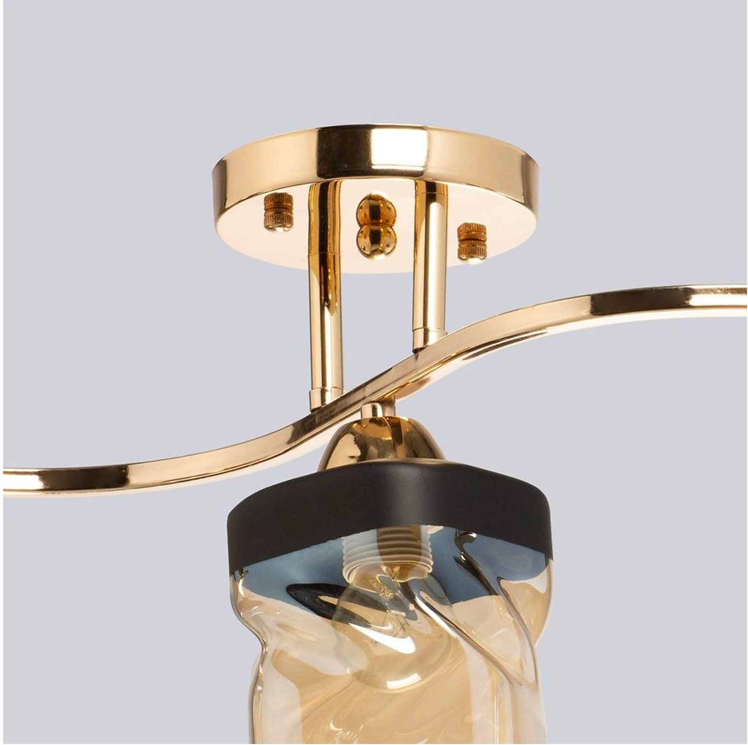 Минималистичный светильник для современных интерьеров. Оригинальный металлический декор цветадобавляет декоративности. Стеклянные плафоны с полосками обеспечивают мягкий световой поток. Компактная высота модели идеальна для стандартных потолков.