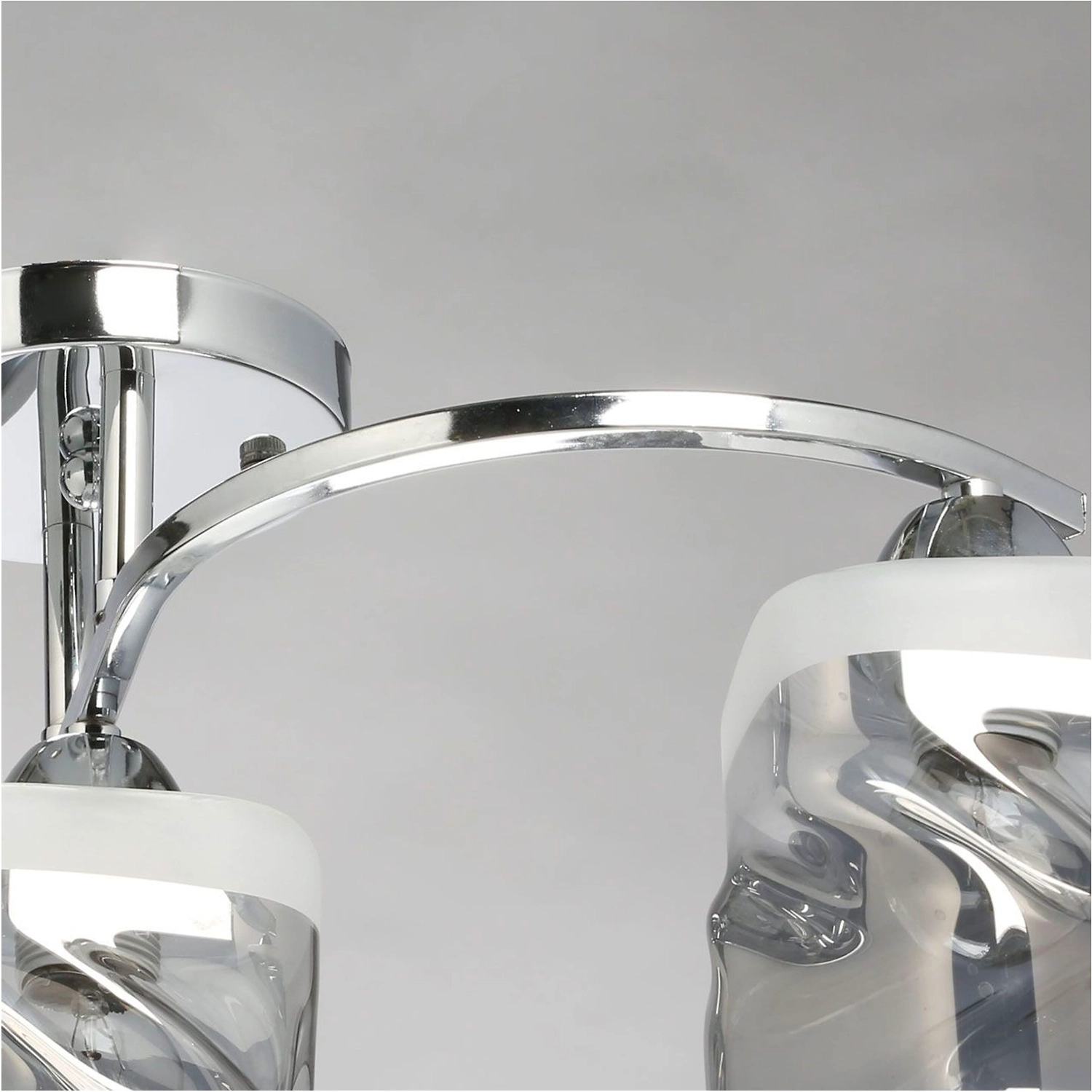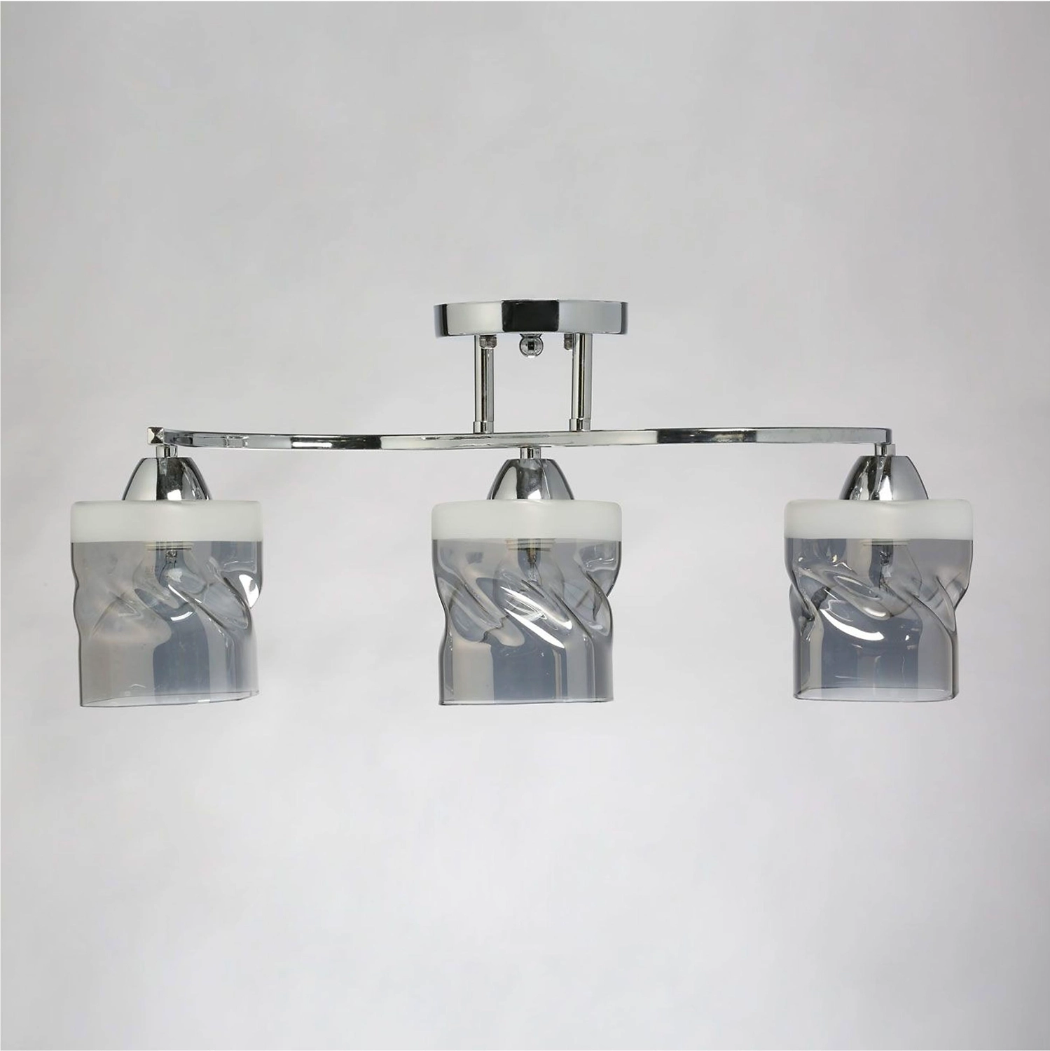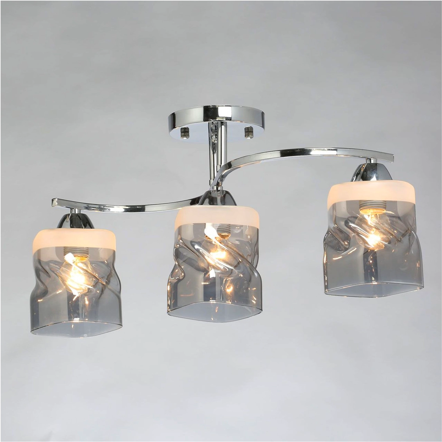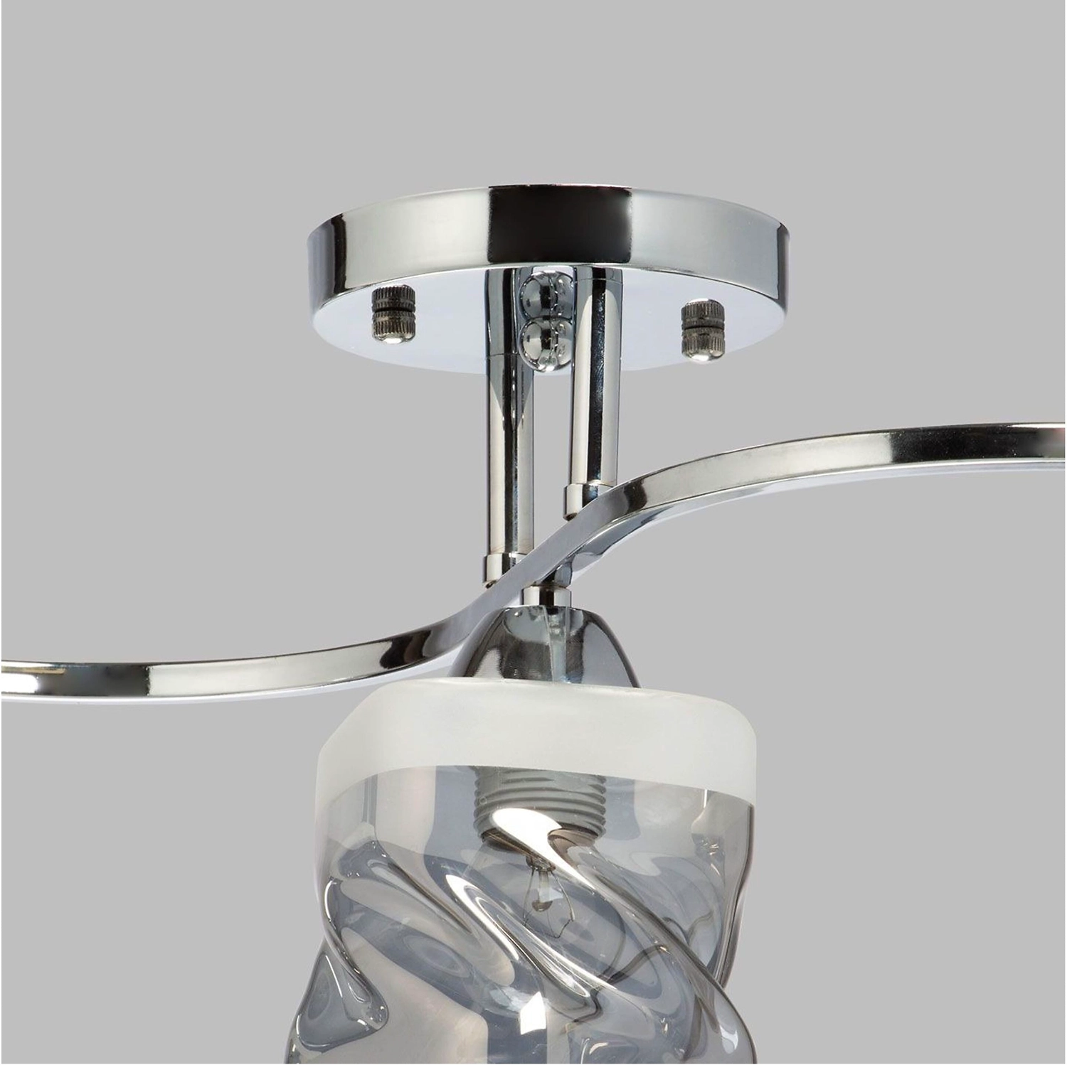 Минималистичный светильник для современных интерьеров. Оригинальный металлический декор цветадобавляет декоративности. Стеклянные плафоны с полосками обеспечивают мягкий световой поток. Компактная высота модели идеальна для стандартных потолков.
