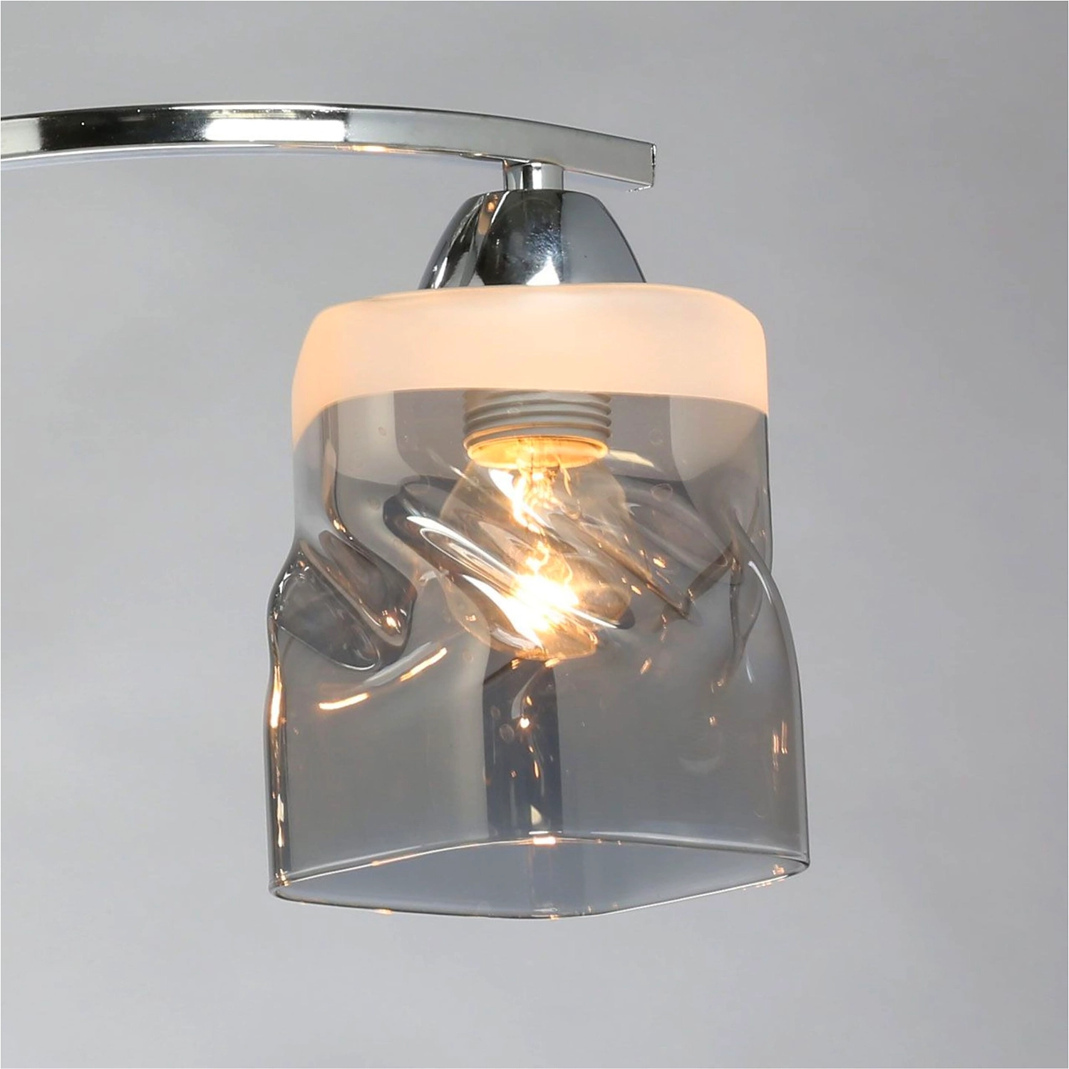 Минималистичный светильник для современных интерьеров. Оригинальный металлический декор цветадобавляет декоративности. Стеклянные плафоны с полосками обеспечивают мягкий световой поток.
