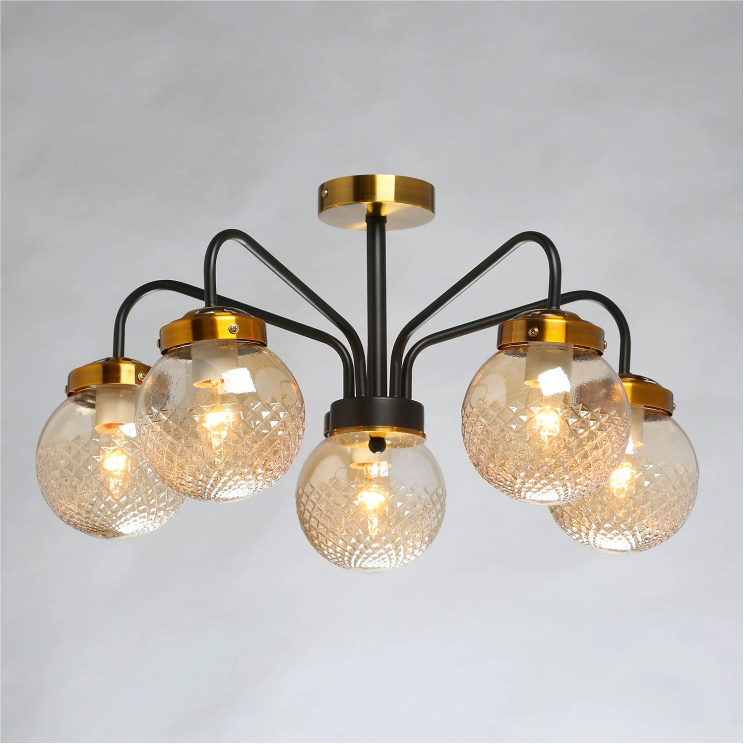 Актуальная комбинация металлов черного цвета и бронзы. Рельефные тонированные плафоны обеспечивают комфортное освещение. Заменяемые источники света удобны в эксплуатации. Компактная высота модели идеальна для стандартных потолков.