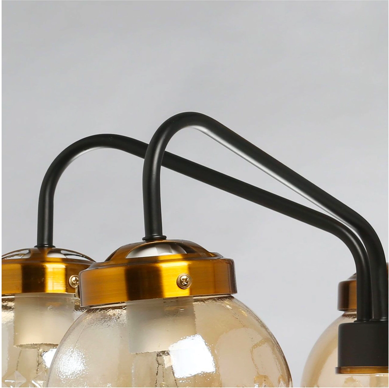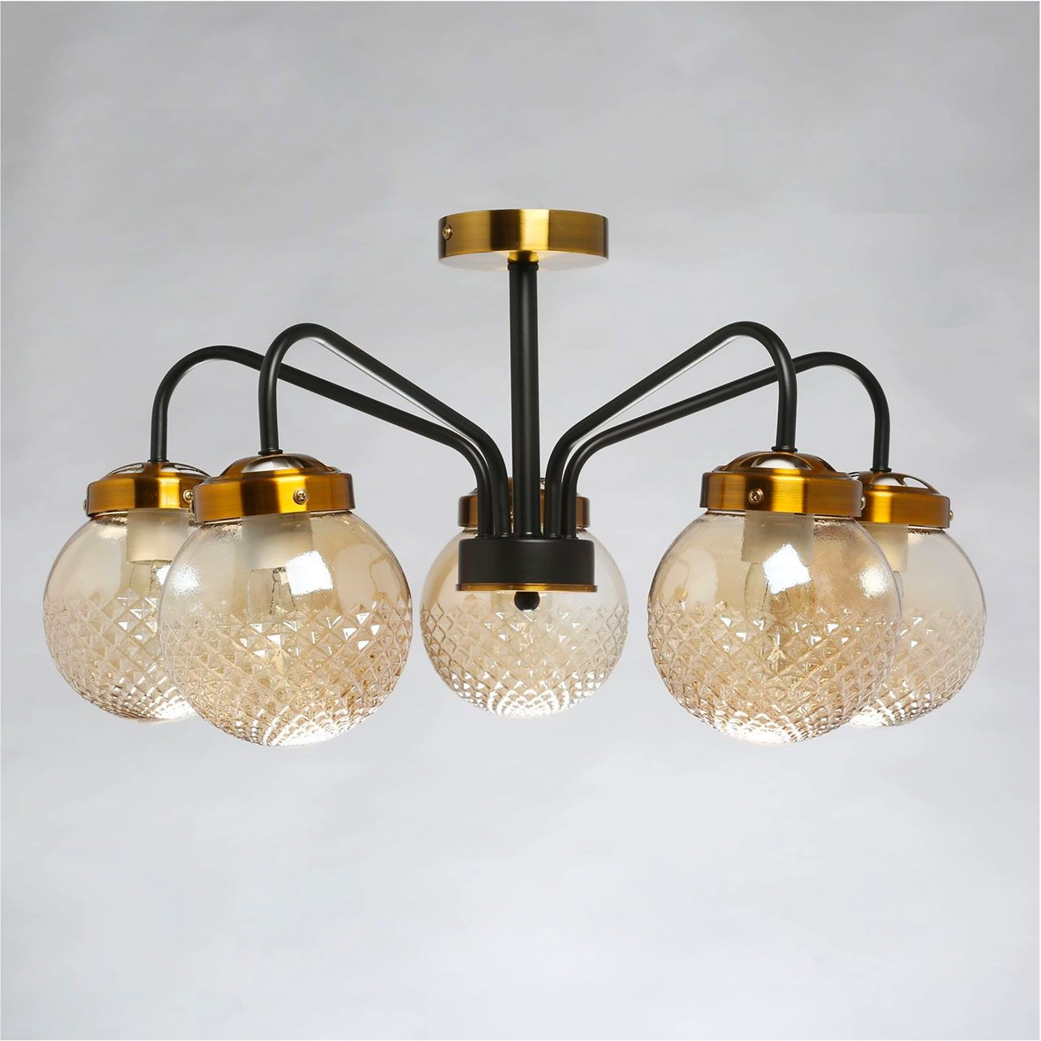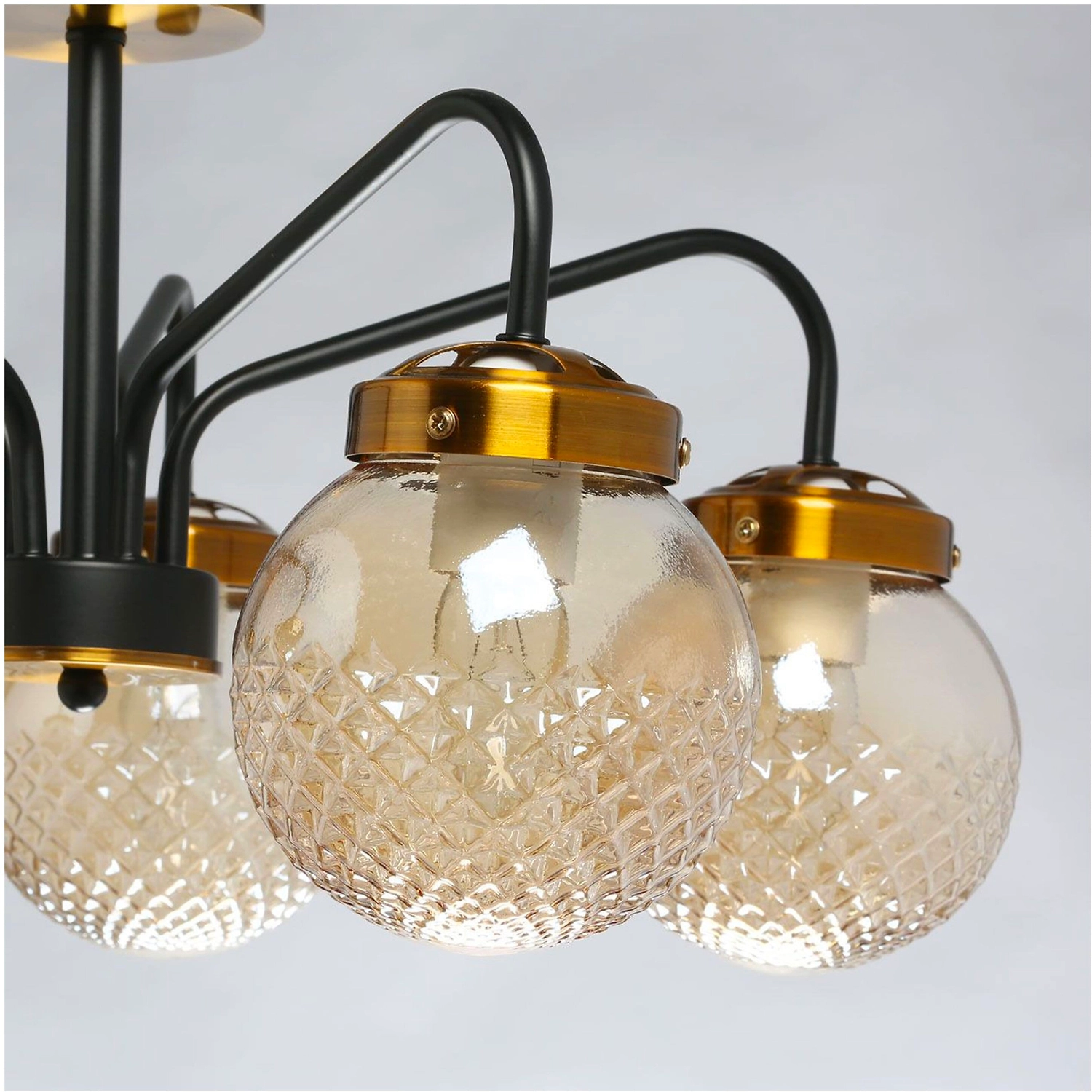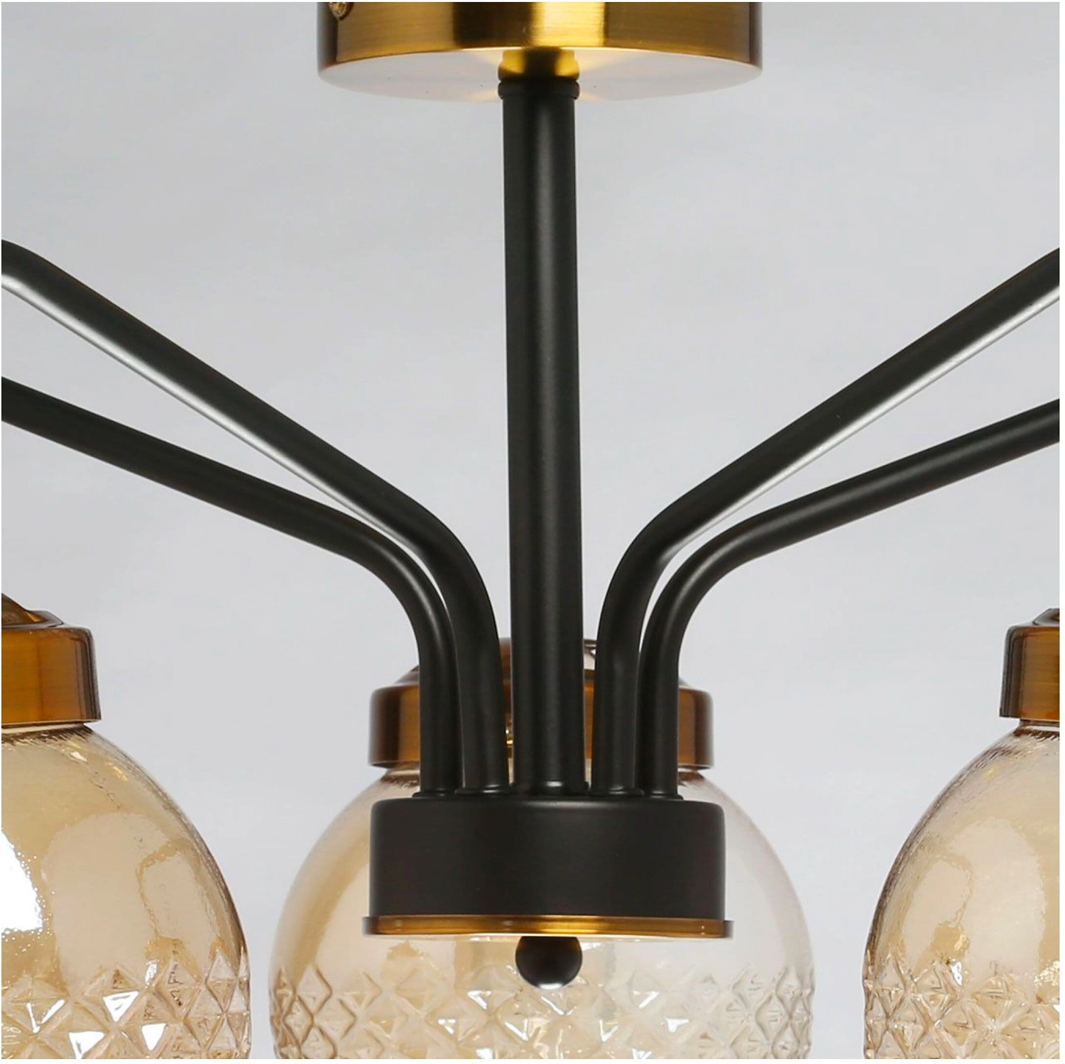 Актуальная комбинация металлов черного цвета и бронзы. Рельефные тонированные плафоны обеспечивают комфортное освещение. Заменяемые источники света удобны в эксплуатации.