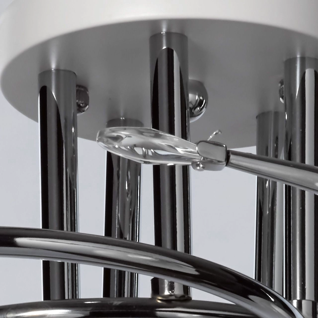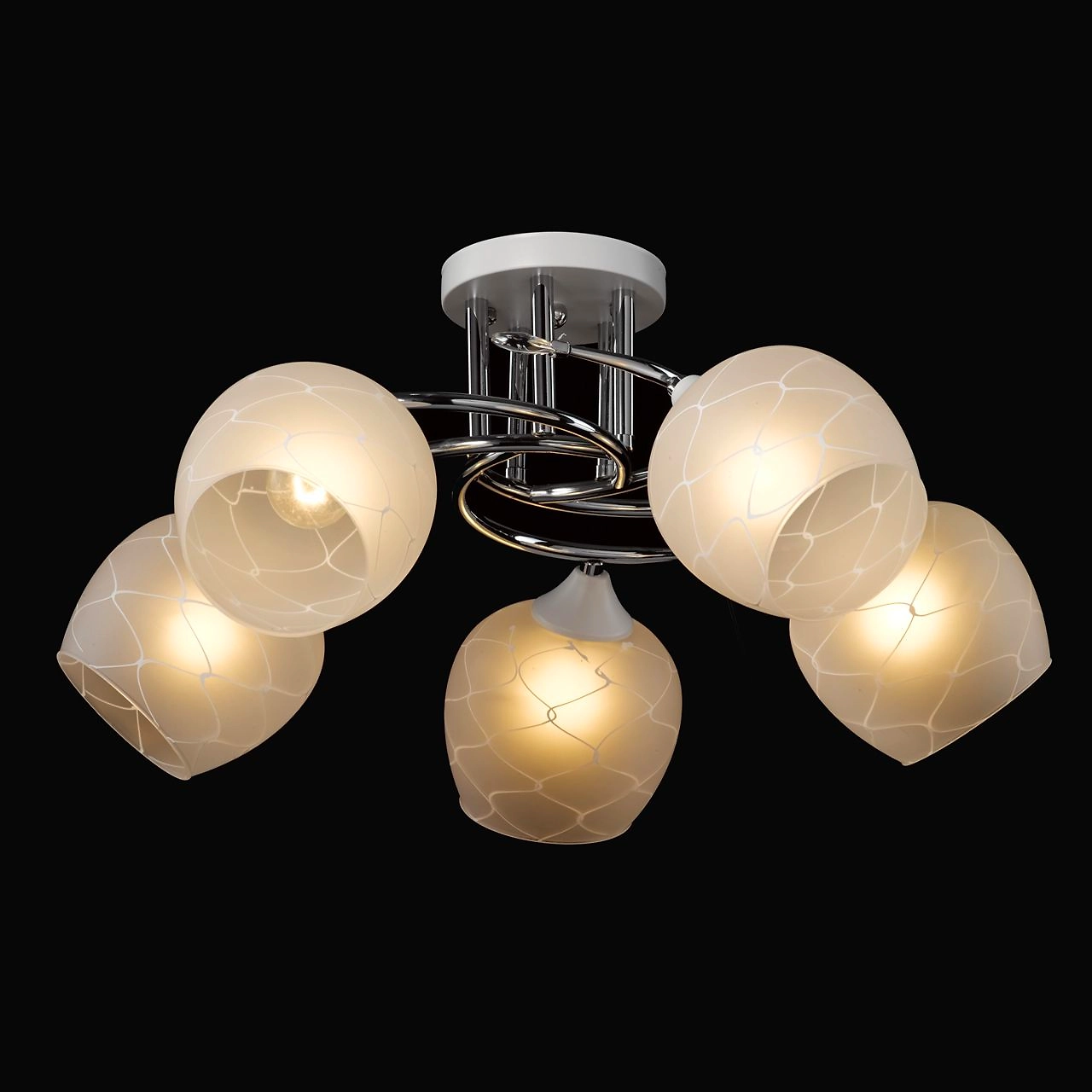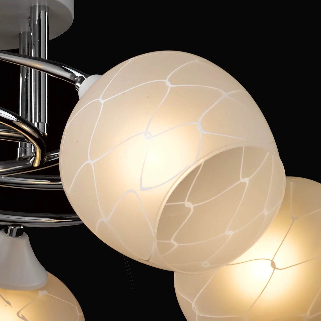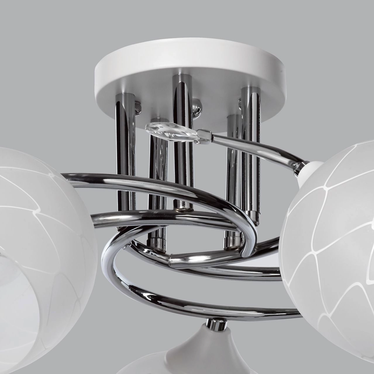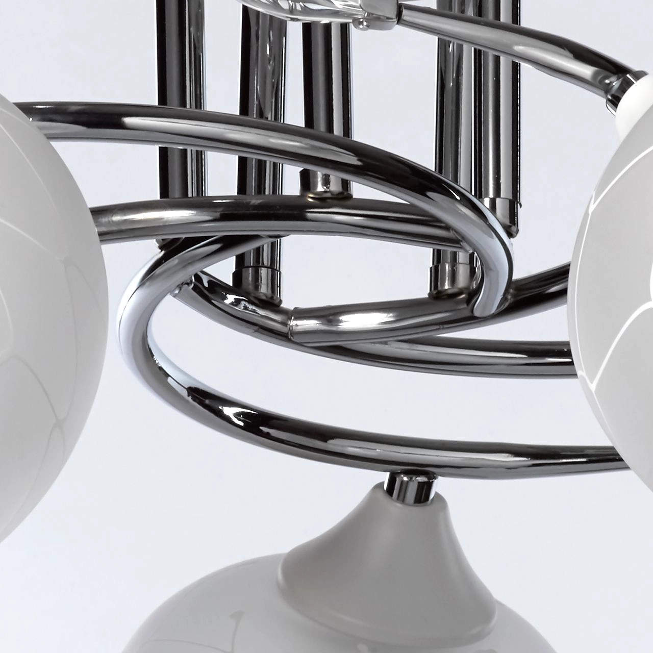 Актуальное сочетание цвета хрома и белого в тренде. Компактная высота модели идеальна для стандартной высоты потолка. Площадь освещения люстры рассчитана на 15 кв.м.