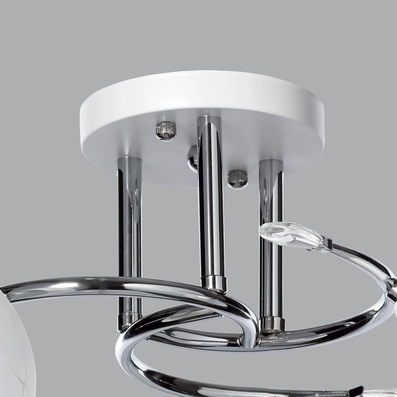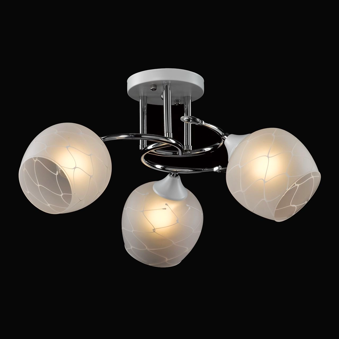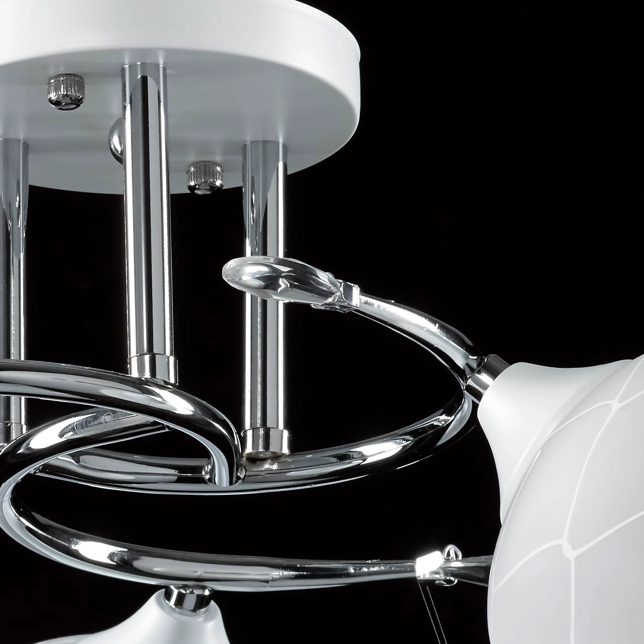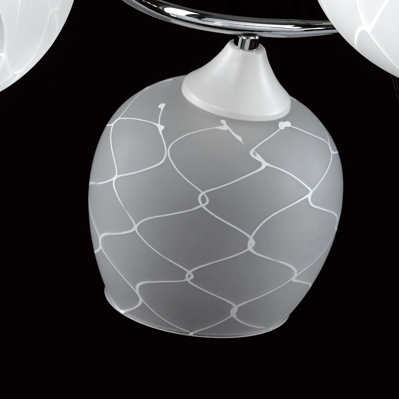 Актуальное сочетание цвета хрома и белого в тренде. Компактная высота модели идеальна для стандартной высоты потолка. Площадь освещения люстры рассчитана на 9 кв.м.