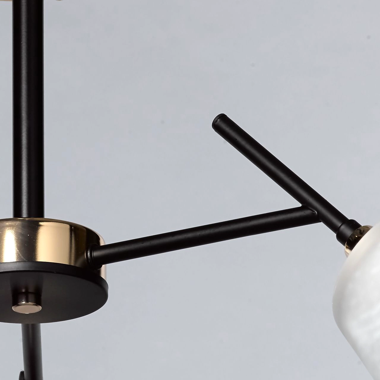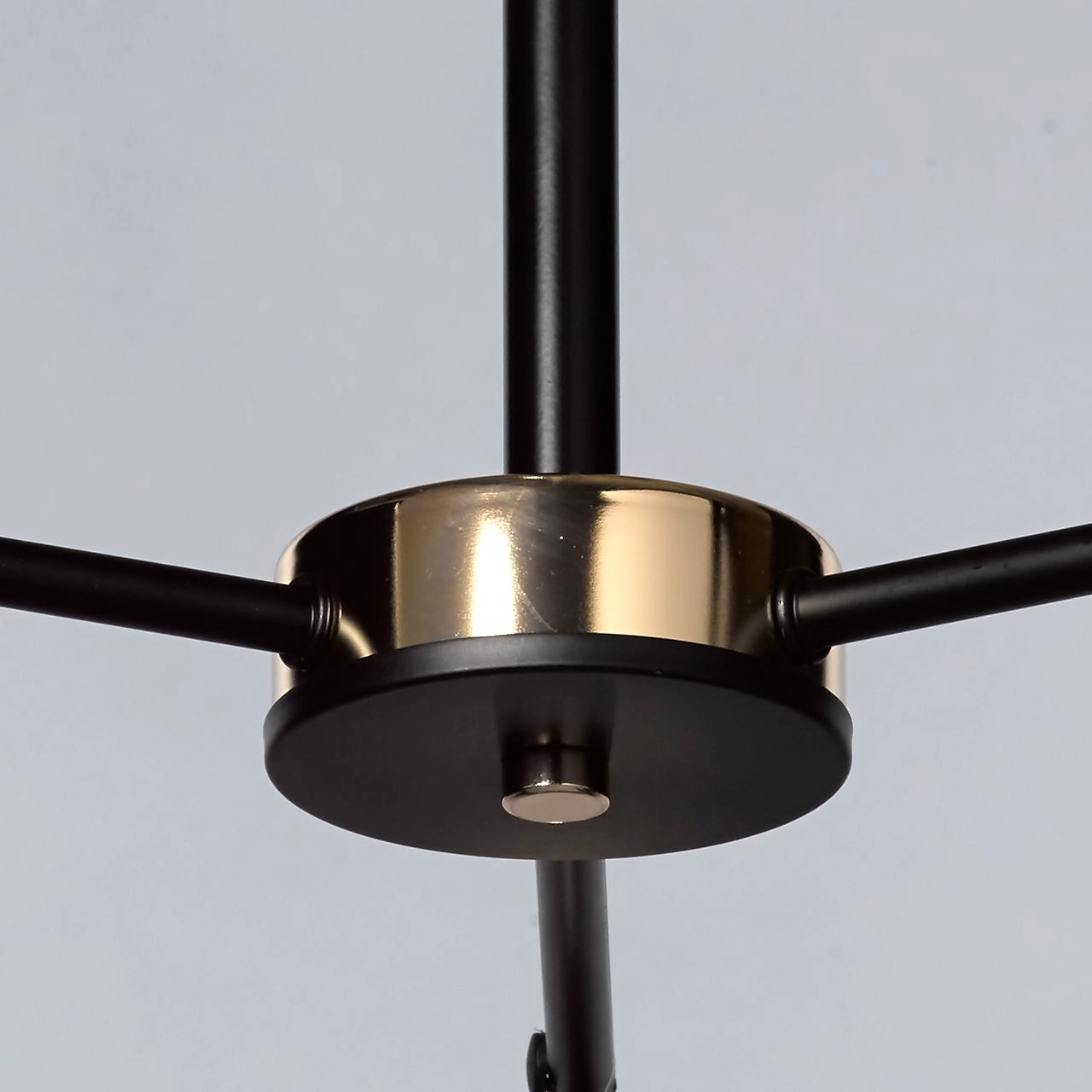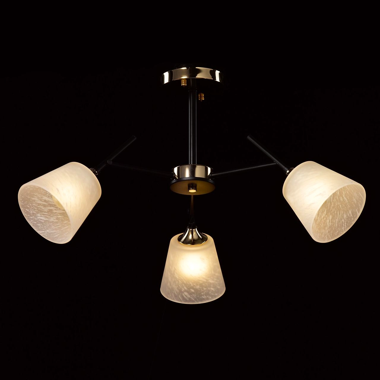 Актуальное сочетание цвета золота и черного в тренде. Компактная высота модели идеальна для стандартной высоты потолка. Площадь освещения люстры рассчитана на 9 кв.м.