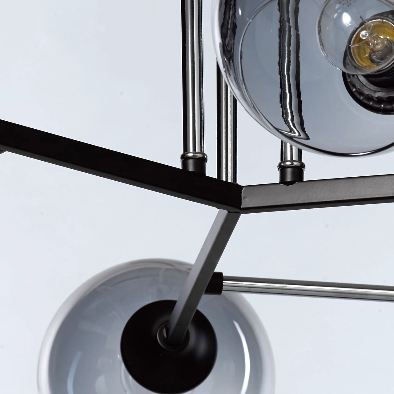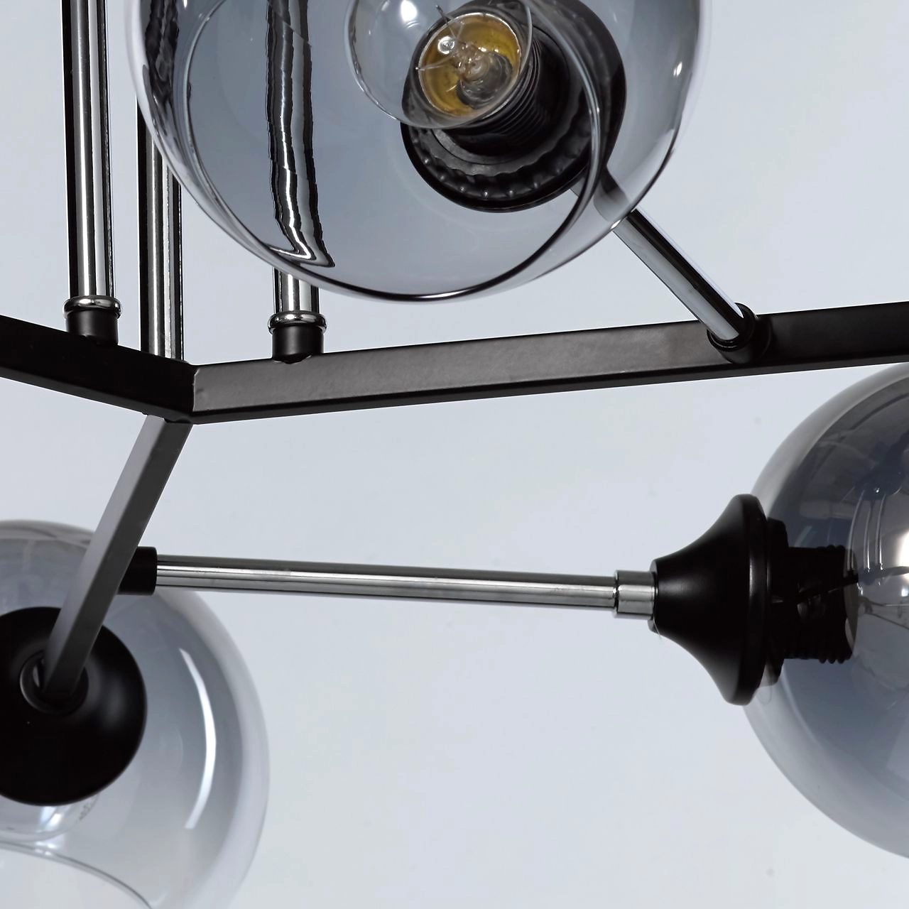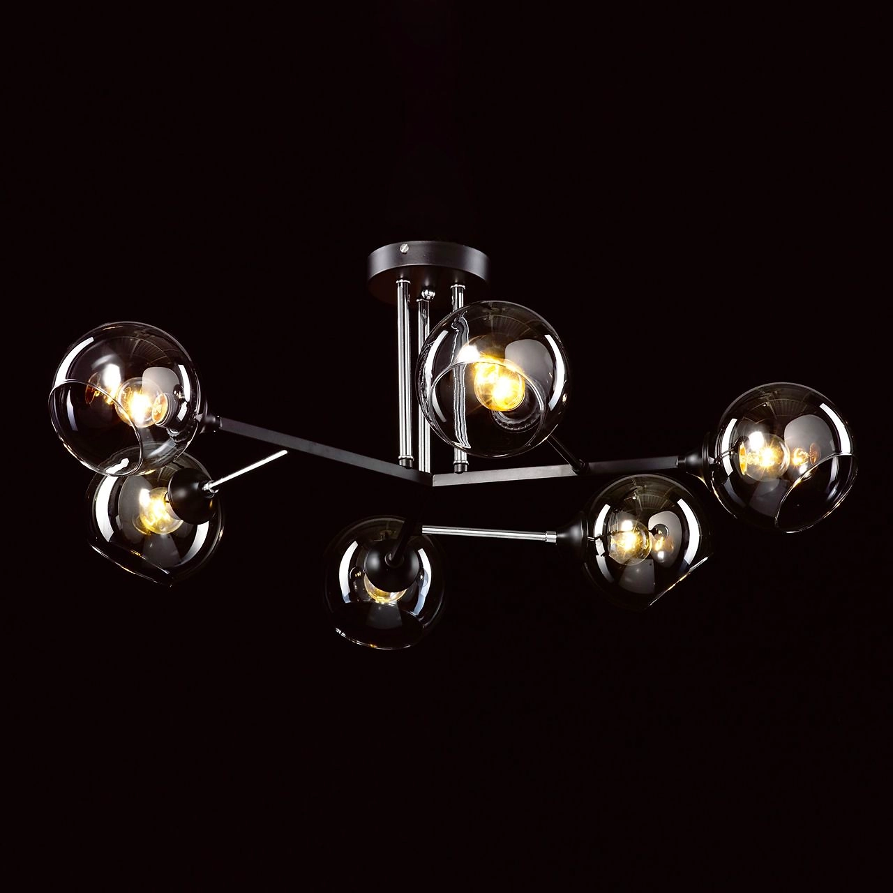 Актуальное сочетание цвета хрома и черного в тренде. Компактная высота модели идеальна для стандартной высоты потолка. Площадь освещения люстры рассчитана на 18 кв.м.