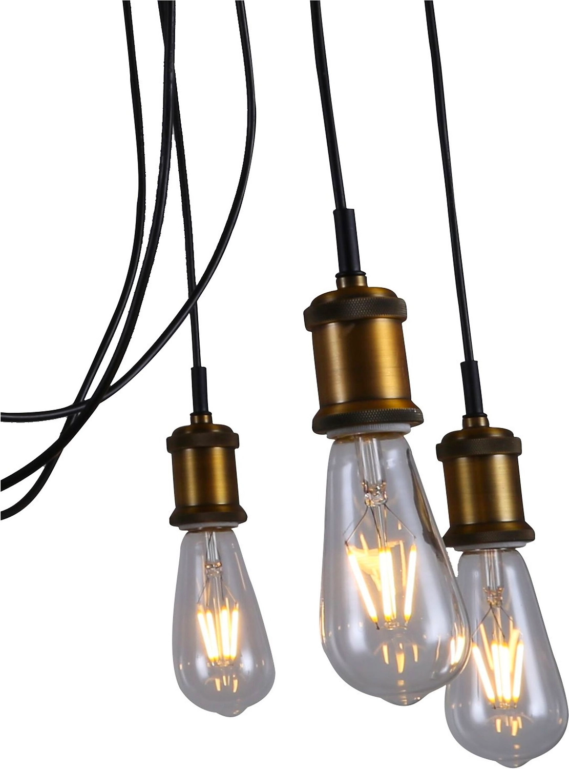 Уникальный дизайн конструкции состоит из крепежных планок, удерживающих многочисленные провода с лампами на конце. Все эти элементы выполнены в черном цвете. Основание ламп изготовлены в приятных кофейных тонах. Благодаря отсутствию плафонов, светильник отличается яркостью, создает в помещении комфортную освещённость. Цоколь стандартного типа подходит для большинства бытовых ламп. Конструкция отличается надежностью, долговечностью и безопасностью. Легко монтируется и подключается к сети.