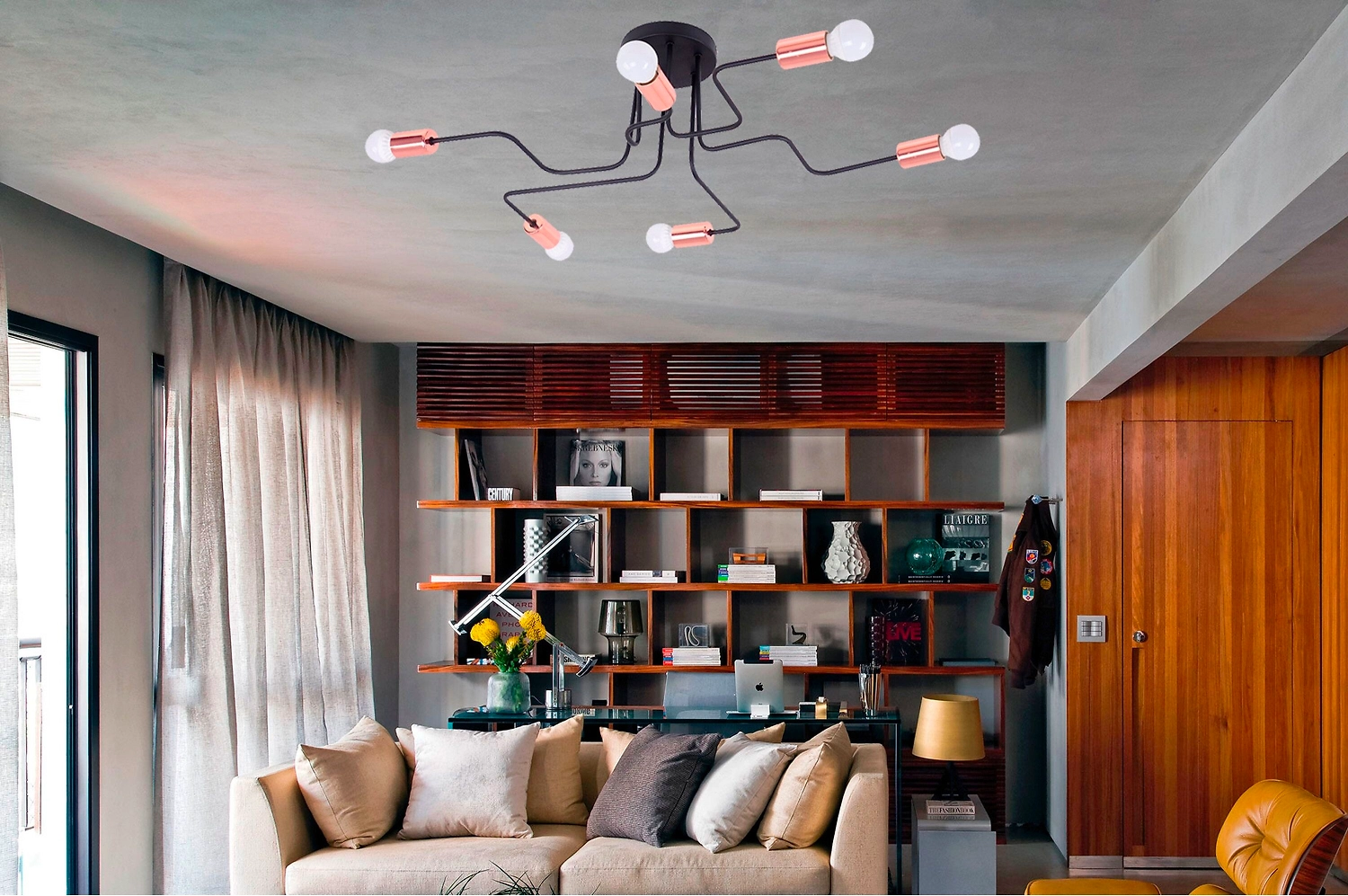 Потолочная люстра J-Light Dallas - это оригинальный осветительный прибор для гостиных, спален, кухонь и других помещений. Шесть патронов из металла с имитацией под бронзу подвешиваются на прочном каркасе темного цвета. Светильник выполнен в интересном дизайне, хорошо подходит для оформлений в стиле лофт или хай-тек.