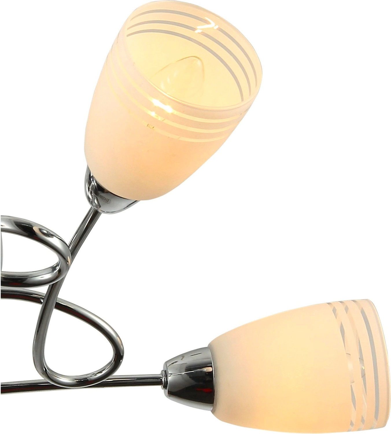 Люстра представляет собой пятирожковую конструкцию, состоящую из арматуры цвета "хром" и конусовидных стеклянных плафонов светлого оттенка. Для данной модели используются стандартные лампы накаливания. Благодаря высокому качеству материалов, готовое изделие устойчиво к таким неблагоприятным внешним воздействиям, как коррозийное изменение цвета, повреждения механического характера и влажность. Мягкость освещения достигается за счет правильного расположения рожков и светопередачи абажуров.