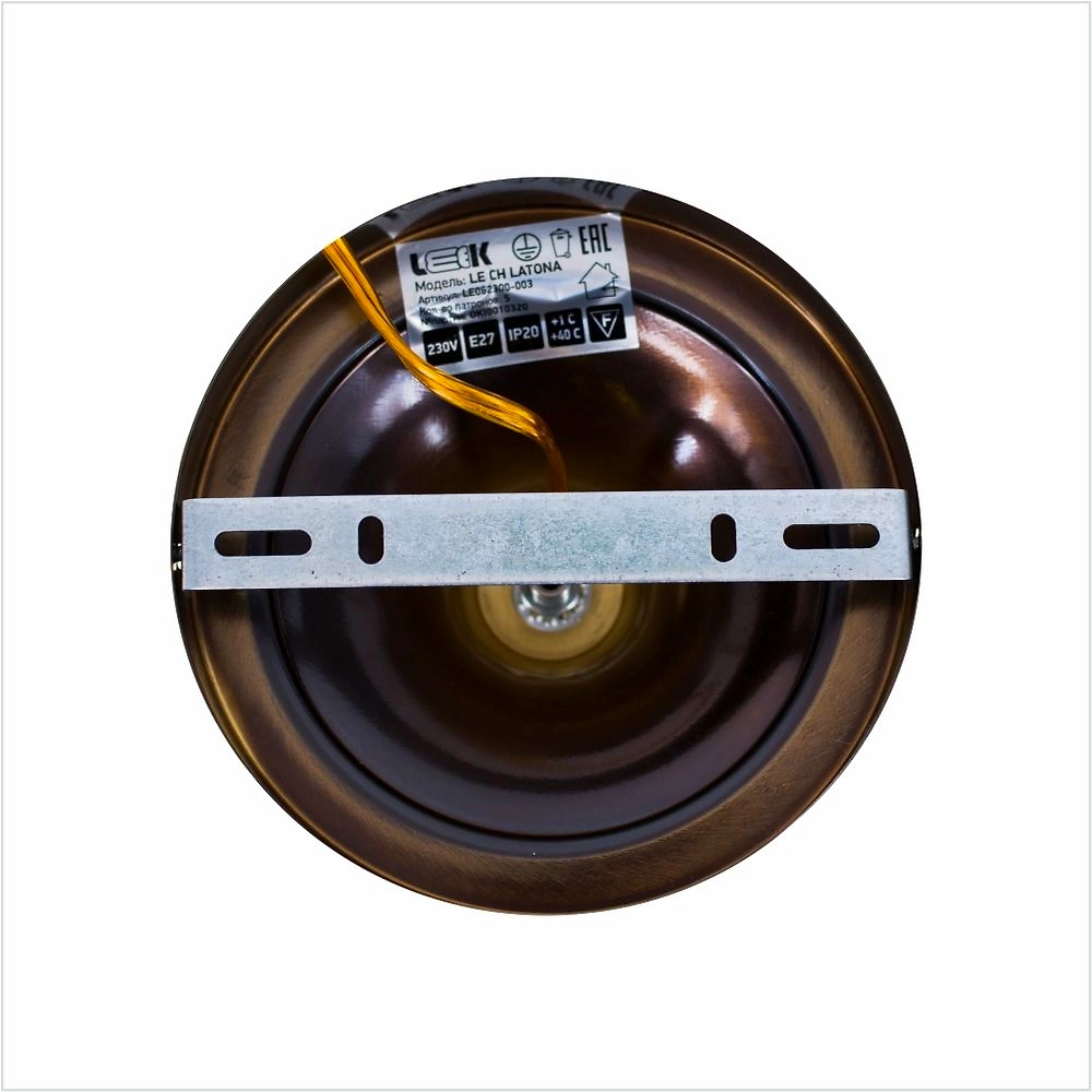 Корпус люстры изготовлен из металла цвета "бронза", плафоны - из белого матового стекла. Абажуры имеют классическую форму, направлены вниз. Для данной модели подходят лампы с цоколем Е27, которые приобретаются отдельно.