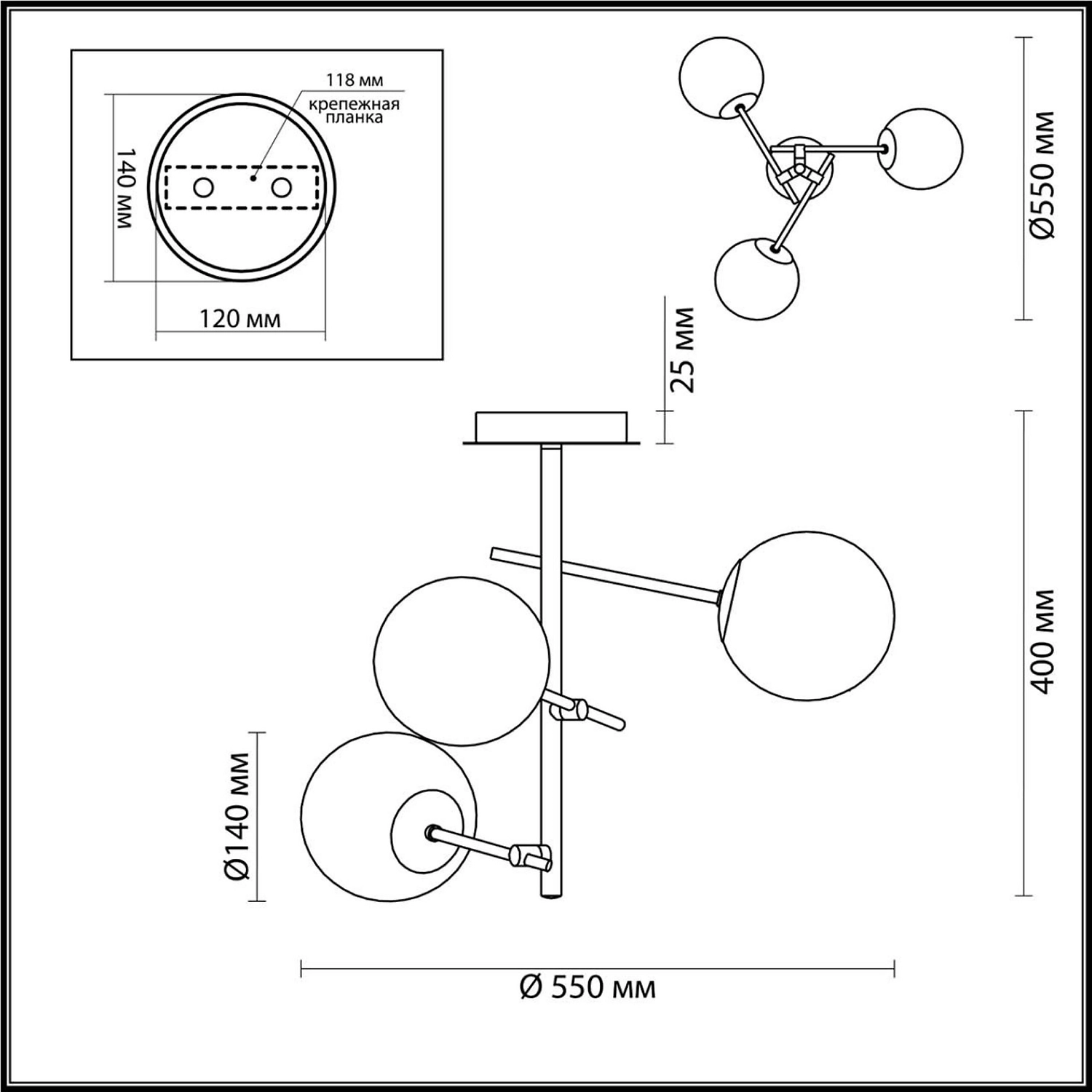 • Форма плафона Шар