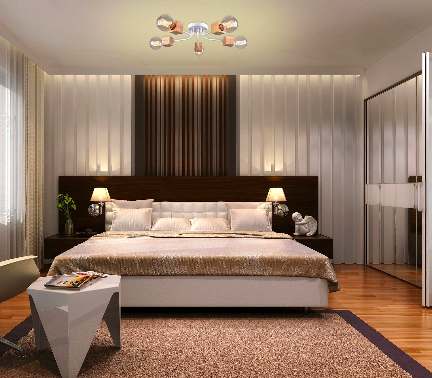 Интересная форма и дизайн - вот что можно сказать о данной серии светильников. Хотите дополнить/украсить созданный Вами стиль лофт? Тогда этот светильник то, что Вам нужно. Используйте лампочки разного размера и величины по своему вкусу. Современности данным светильникам придают стильные деревянные кубы, которые находятся на рожках.