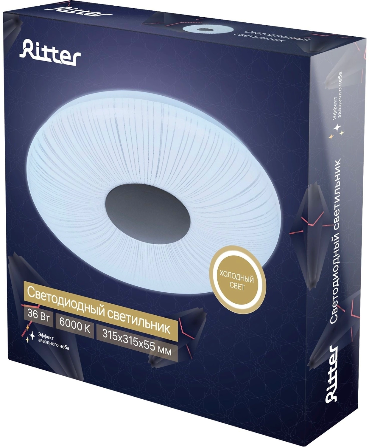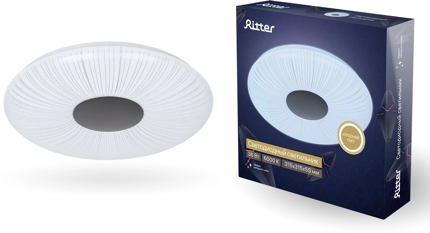 Потолочный светильник Ritter Unica 52220 1 с LED-элементами по всей площади равномерно освещает помещение. Украшением модели служит белый акриловый плафон, мерцающая поверхность которого, напоминает звездное небо.