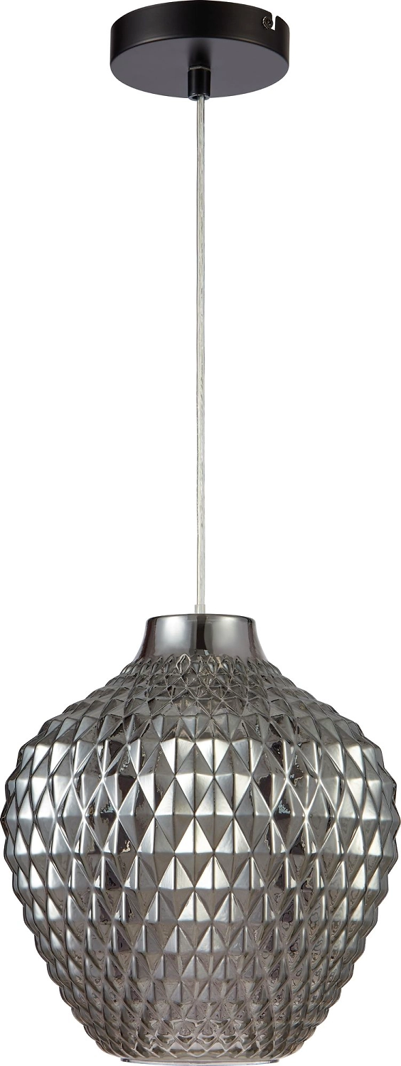 Металлическое основание светильника дополняет эффектный абажур из стекла с зеркальным напылением. К подвесу подходят любые типы ламп с цоколем Е27 и максимальной мощностью 40 Вт.