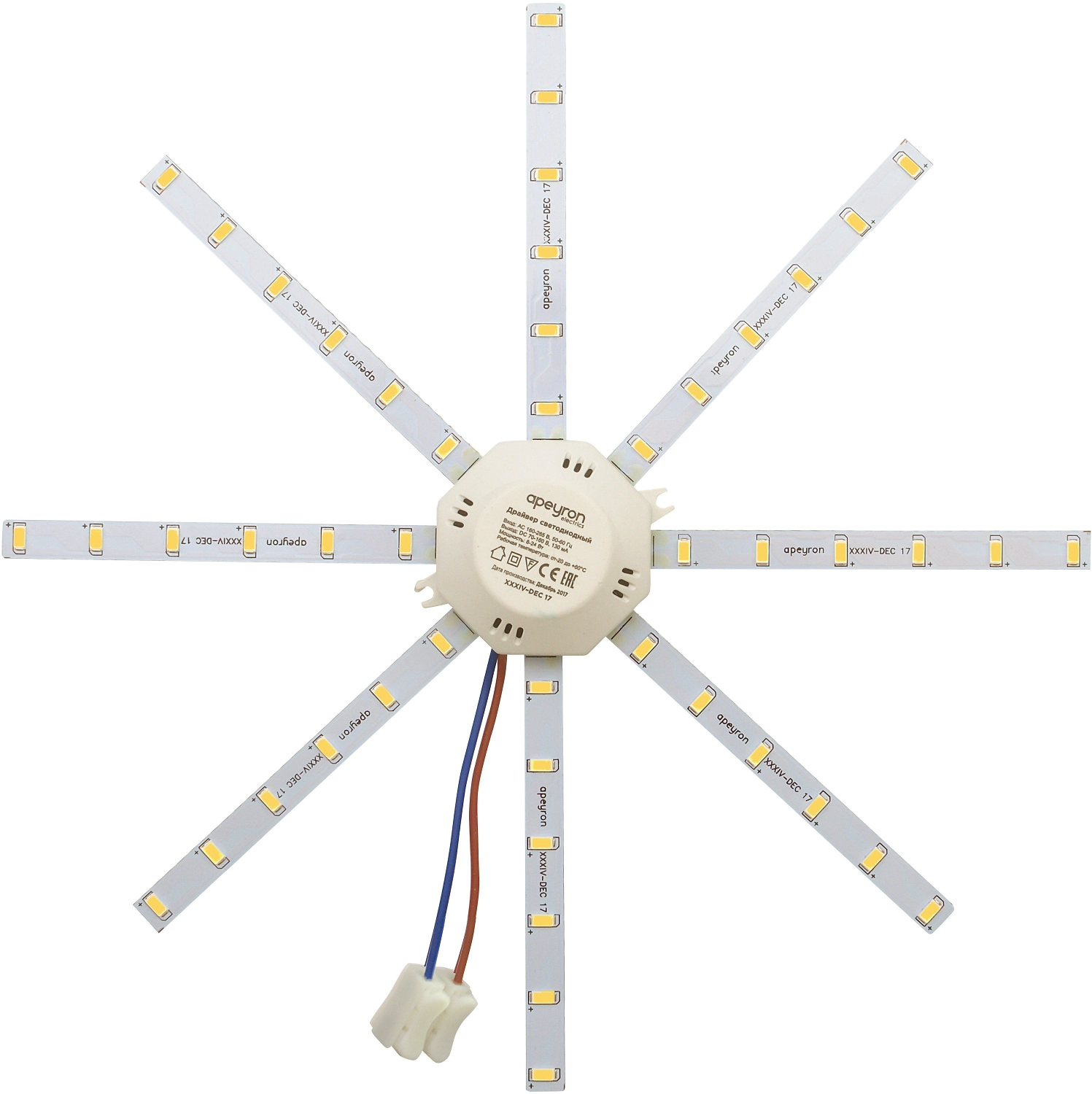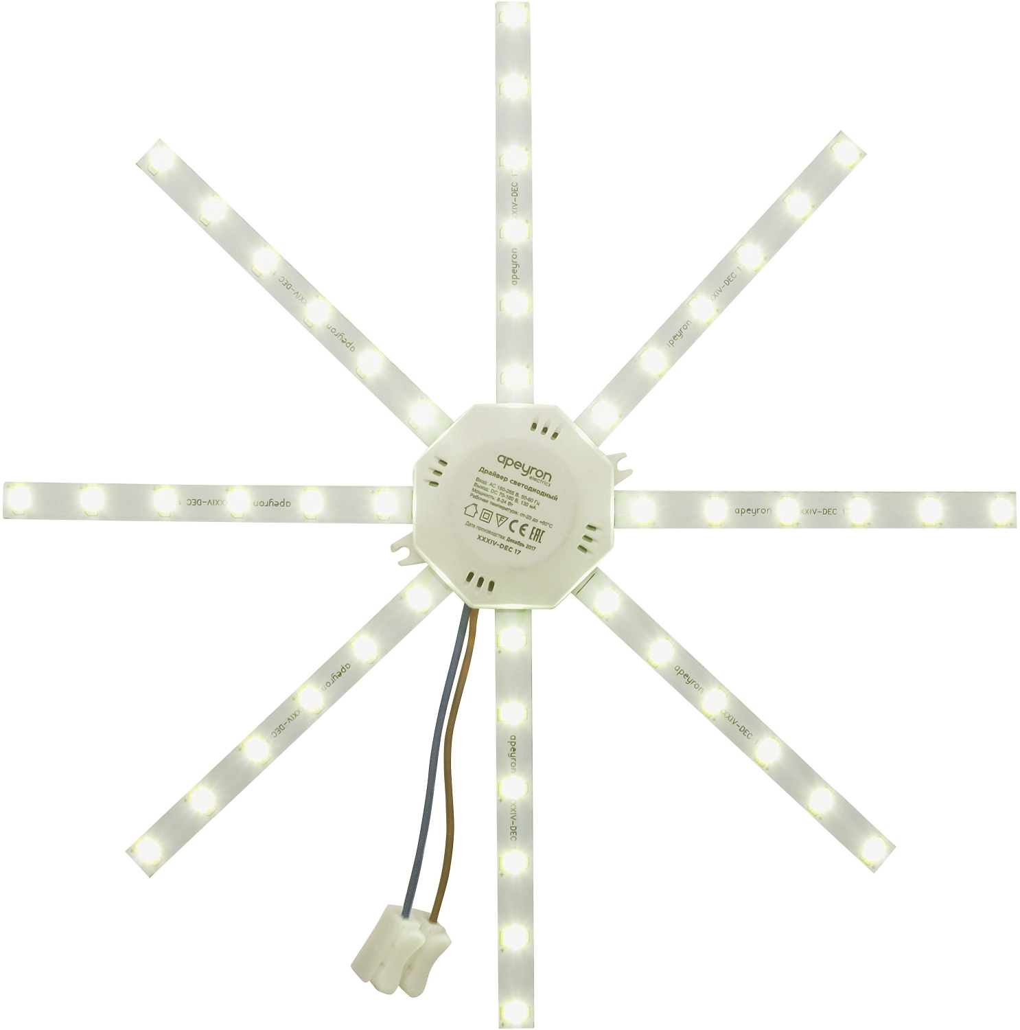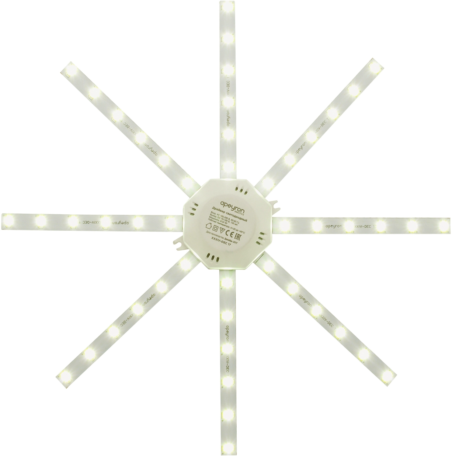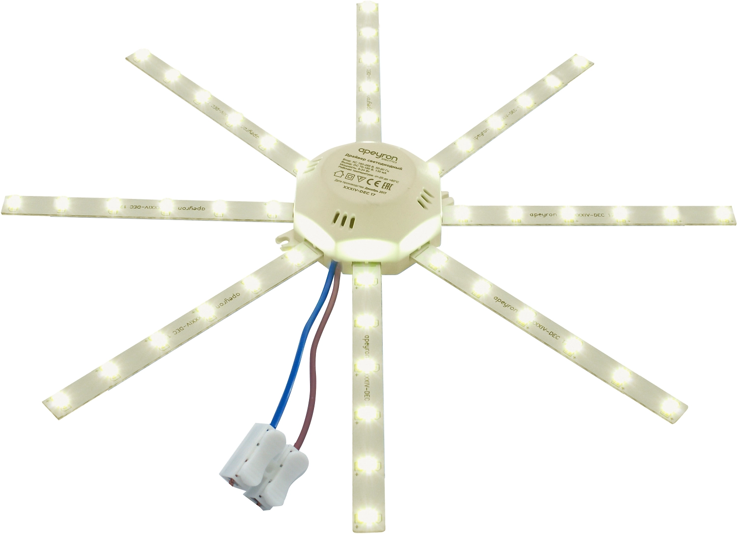 Комплект светодиодных линеек "Звездочка" с артикулом 02-45 предназначен для замены стандартных ламп, а также современных светодиодных источников свечения, которые уже повсеместно используются в настенно-потолочных светильниках. Благодаря конструкции этого комплекта плафон светильника будет светиться на все 100 %, а уровень освещенности повысится даже по сравнению со светодиодными лампами аналогичной мощности. Благодаря большей площади охлаждения срок службы будет в разы больше.