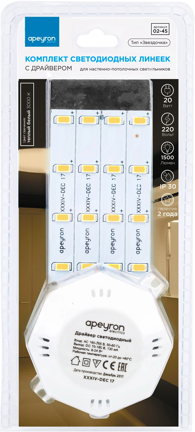 Комплект светодиодных линеек "Звездочка" с артикулом 02-45 предназначен для замены стандартных ламп, а также современных светодиодных источников свечения, которые уже повсеместно используются в