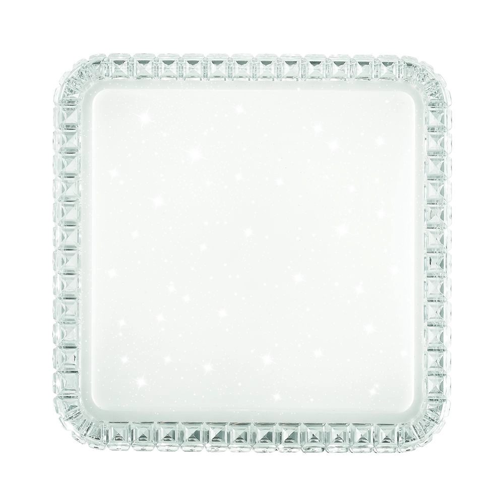 Конструкция изготовлена в классическом белом цвете из высококачественных материалов. Светильник имеет вид прямоугольной пластины, поверхность которой оформлена легким узором в виде звездного неба. Рисунок становится более заметным, когда прибор находится во включенном состоянии.