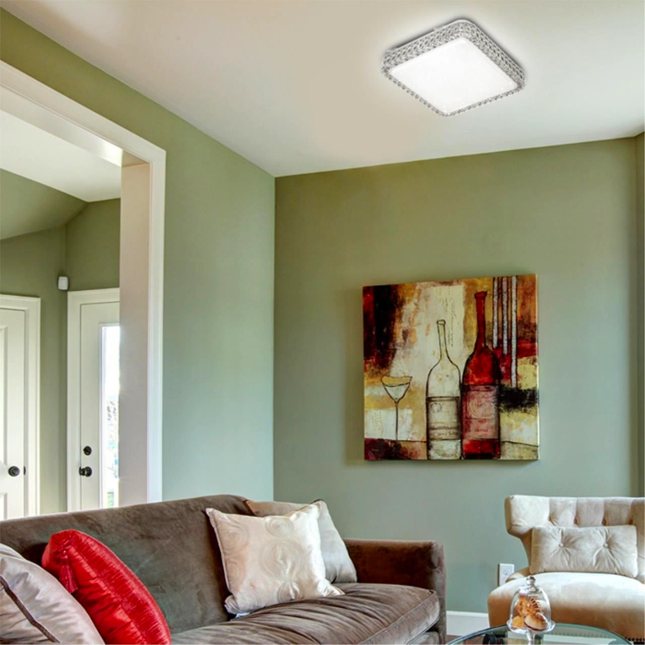 Светильник 2035/DL линии KAROLA состоит из металлического основания (базы) и пластикового рассеивателя. Материал рассеивателя - высококачественный акрил белого цвета с глянцевой поверхностью, обеспечивающий светильнику равномерное рассеивание и хорошее светопропускание. Форма плафона: квадратная, декорирована рисунком в виде прозрачных точек и рельефным ободом, которые придают включенному светильнику красивый эффект "звездного мерцания" и переливания.