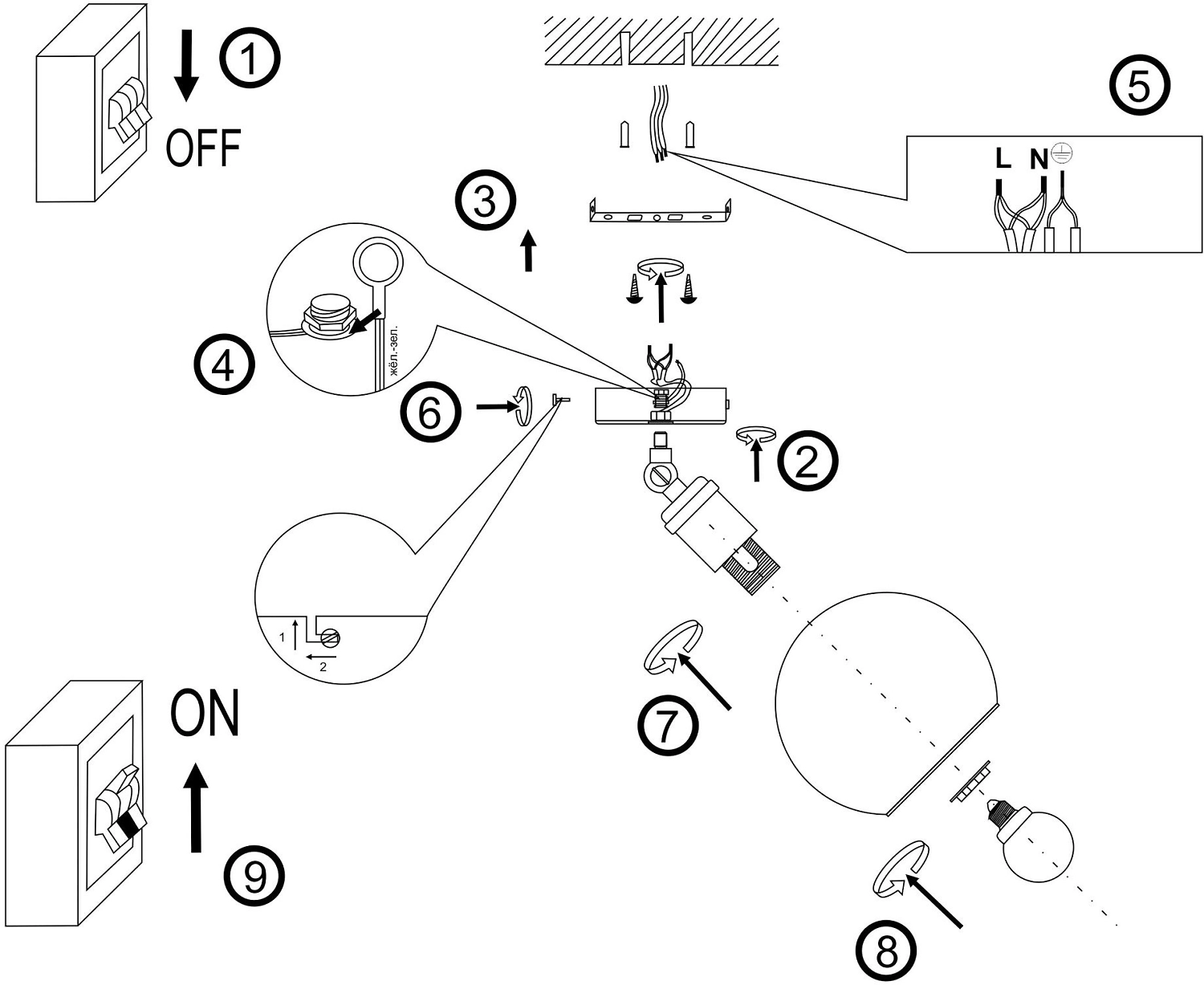 • Форма плафона Шар