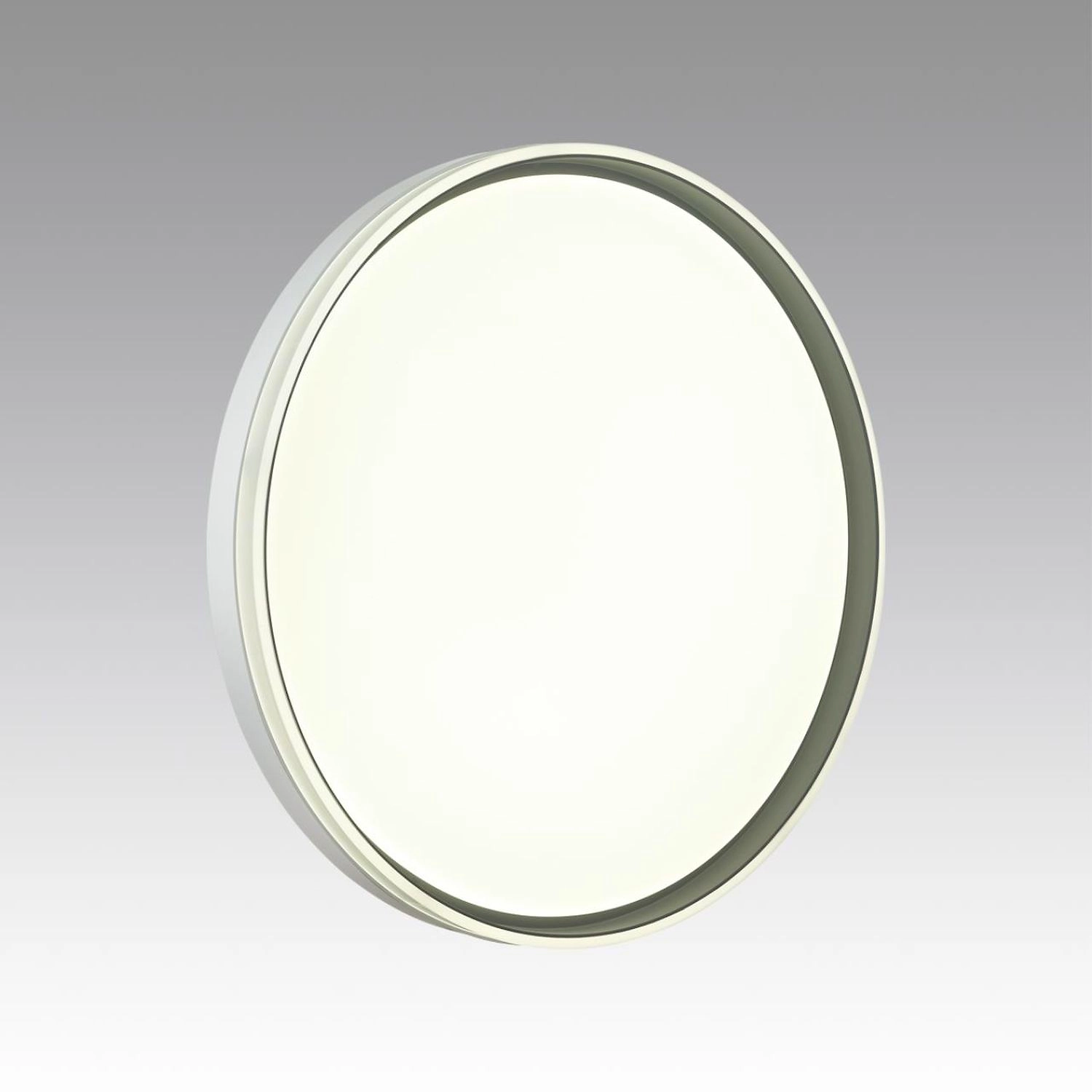 Светильник 7631/EL линии SAVI состоит из металлического основания (базы) и пластикового рассеивателя. Материал рассеивателя - качественный акрил белого цвета с матовой поверхностью, без текстуры. Пластик обеспечивает светильнику равномерное рассеивание и хорошее светопропускание. Форма плафона: круглая, декорирована ободом из пластика светло-серого цвета. Степень защиты IP43 позволяет использовать светильник в определенных зонах влажных помещений. В комплект входит заменяемый LED модуль с линзами, мощностью 72Вт, которая соответствует лампе накаливания 520Вт. А также пульт ДУ, с помощью которого осуществляется плавное изменение цветовой температуры 3000-6000К, изменение яркости, переход в режим переключения теплого/белого/холодного/ночного света. Светильник имеет функцию "память".