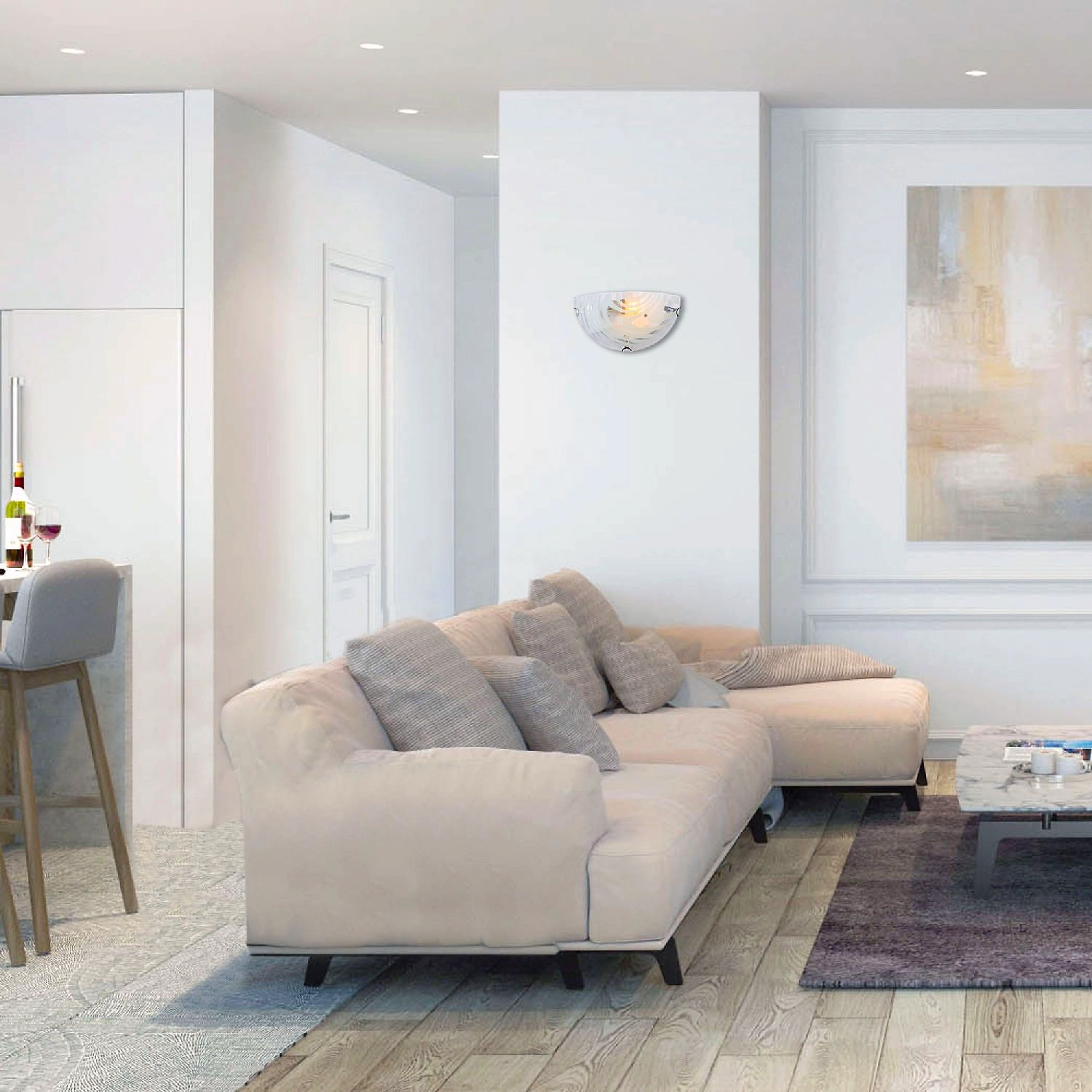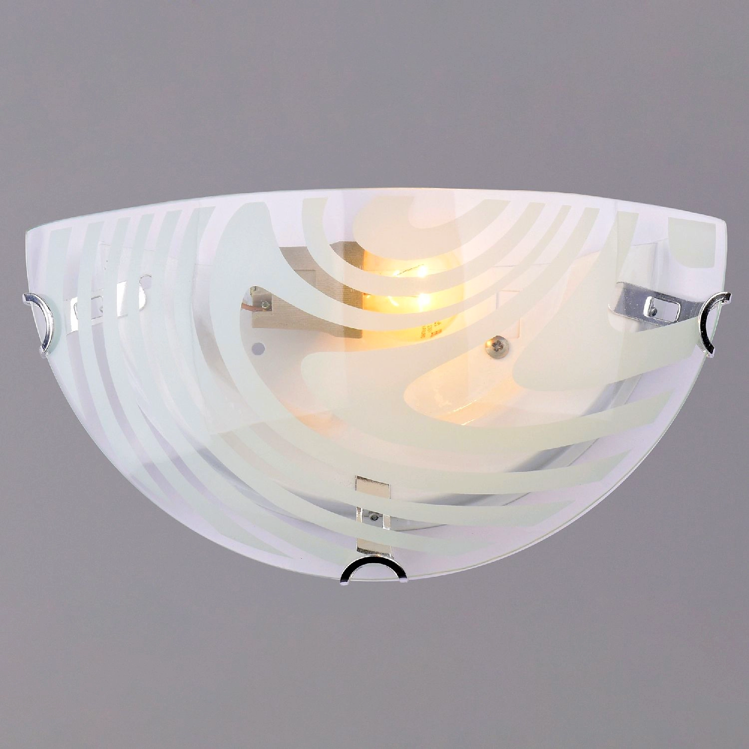 Белоснежный светильник с фантазийным рисунком на стекле привлекает своей красотой, придавая интерьеру легкий и изысканый вид. Модели настенных светильников, которые универсальны по всем своим характеристикам. Компактный размер светильника позволяет использовать его в абсолютно любом помещении. Данные модели актуальны в качестве дополнительного освещения.