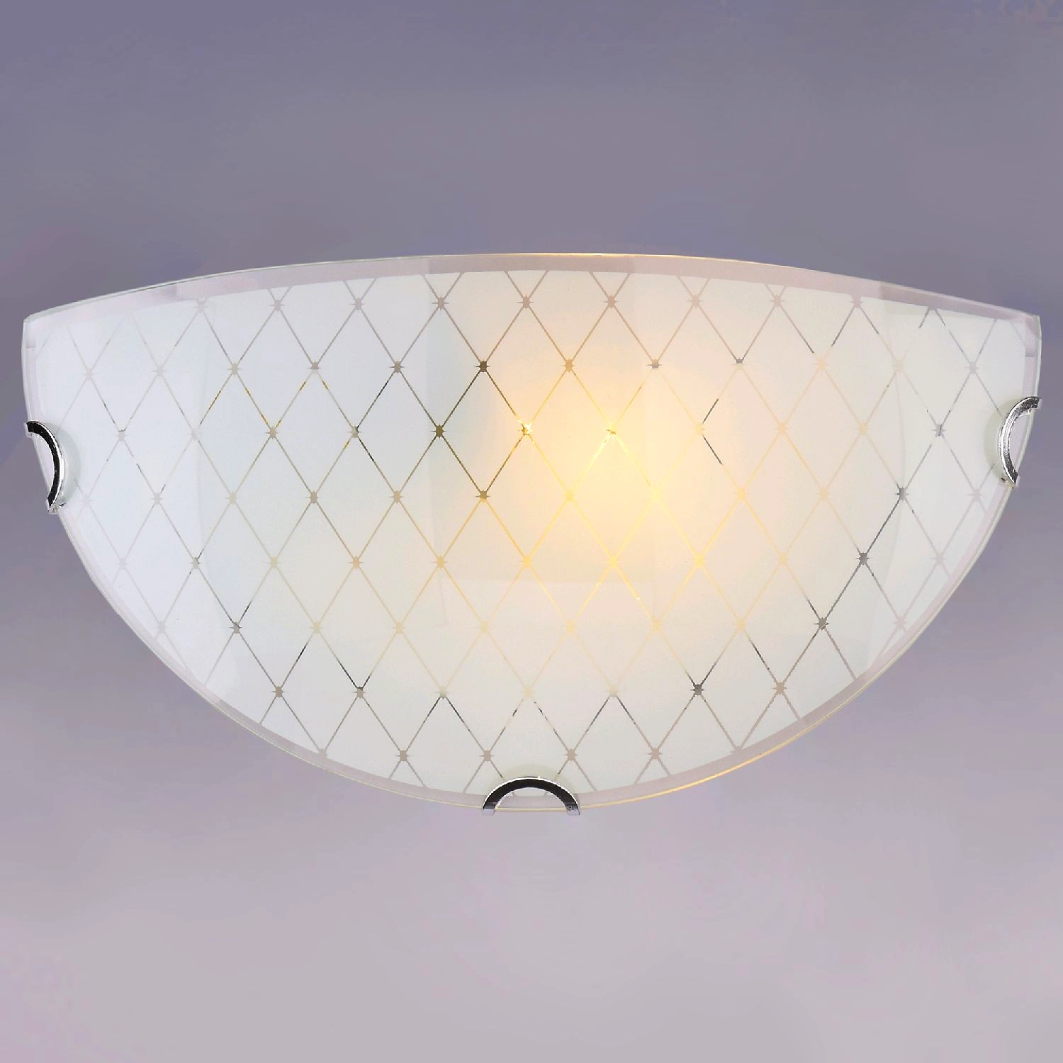 Белоснежный светильник с геометрическим узором на стекле привлекает своей красотой, придавая интерьеру легкий и изысканый вид. Модели настенных светильников, которые универсальны по всем своим характеристикам. Компактный размер светильника позволяет использовать его в абсолютно любом помещении. Данные модели актуальны в качестве дополнительного освещения.