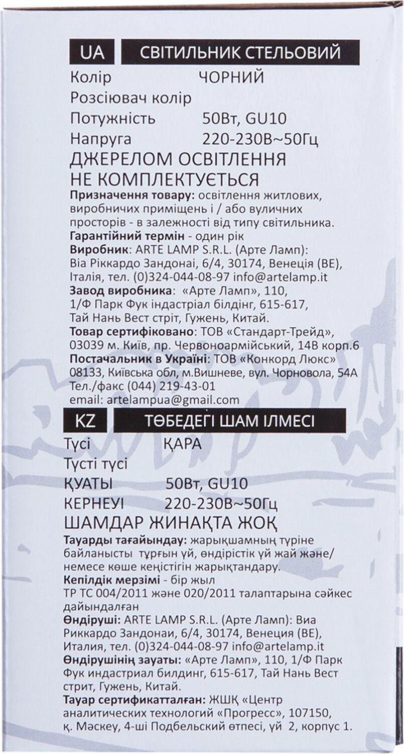 Трековый светильник ARTE Lamp Track Lights A5319PL-1BK