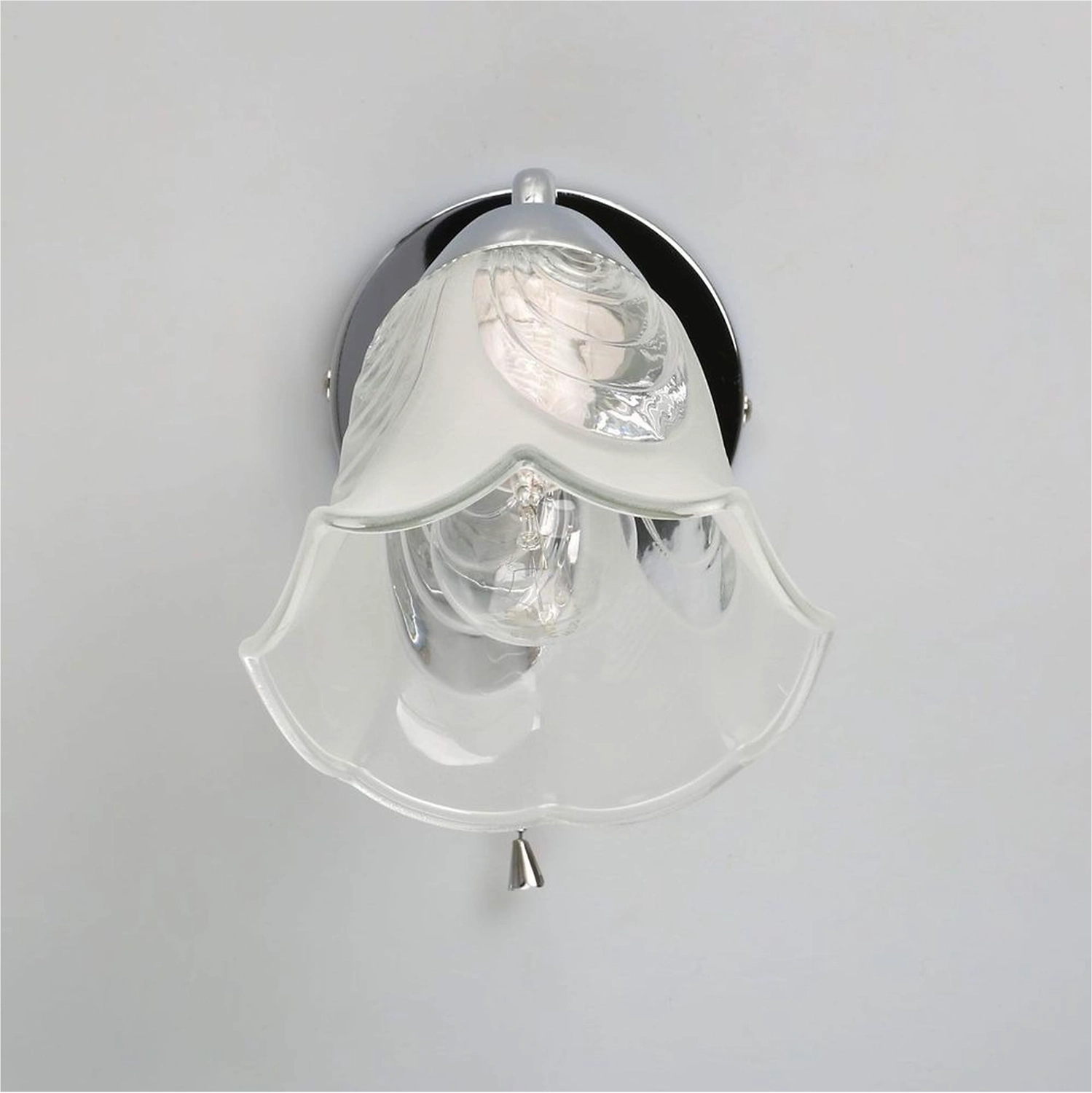 Фантазийный дизайн светильника идеален для современных интерьеров. Стеклянный рельефный плафон частично матирован, обеспечивает мягкое зональное освещение. Декоративный элемент из хрустального стекла дополняет романтичный образ. Индивидуальный выключатель на корпусе удобен в эксплуатации.