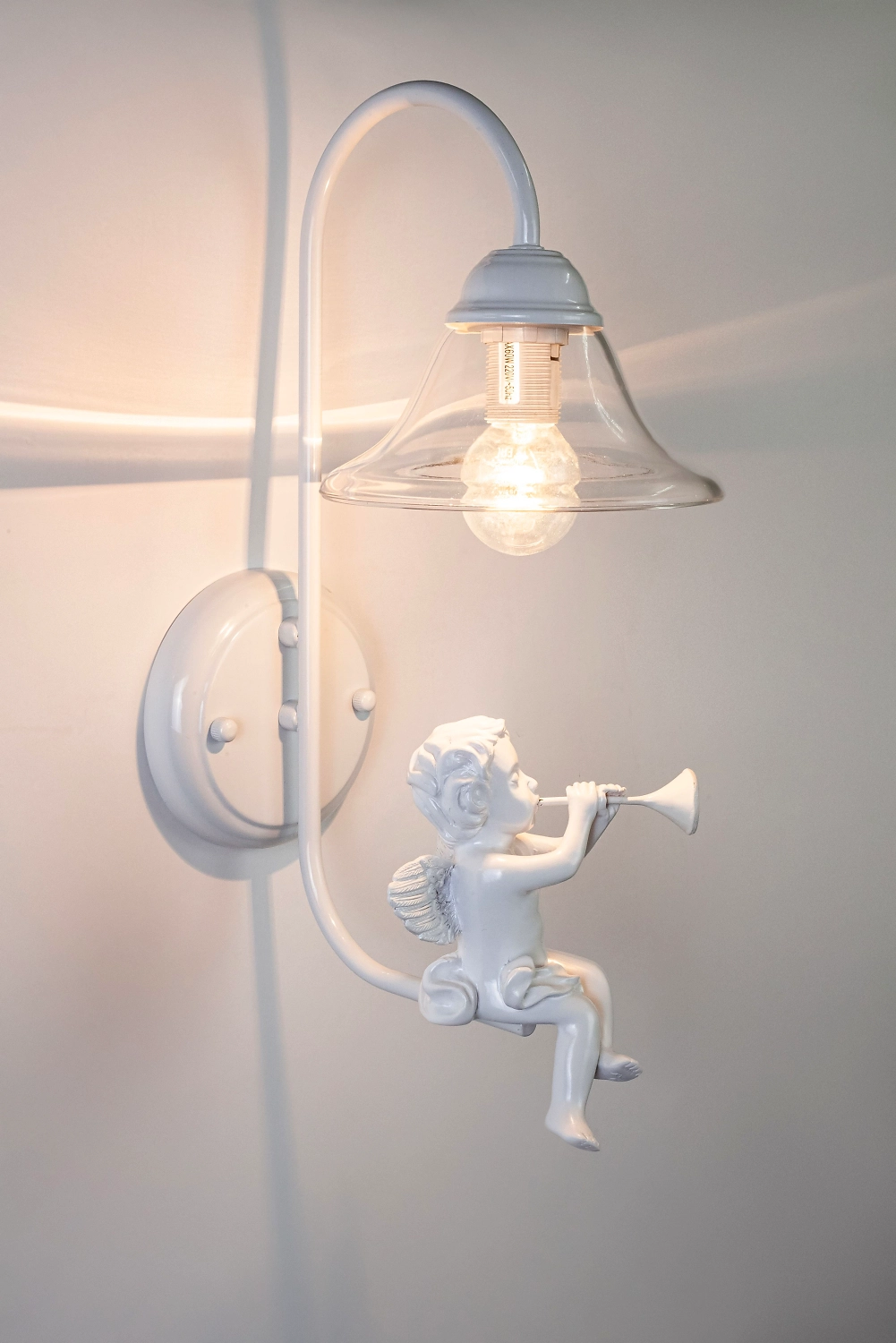 Элегантный настенный светильник от Escada в классическом белом исполнении эффектно дополнит интерьер в стиле модерн или классика. А необычная фигурка в виде ангела добавляет данной модели оригинальности, отличая ее от многих других. Бра хорошо будет смотреться в спальне или гостиной.
