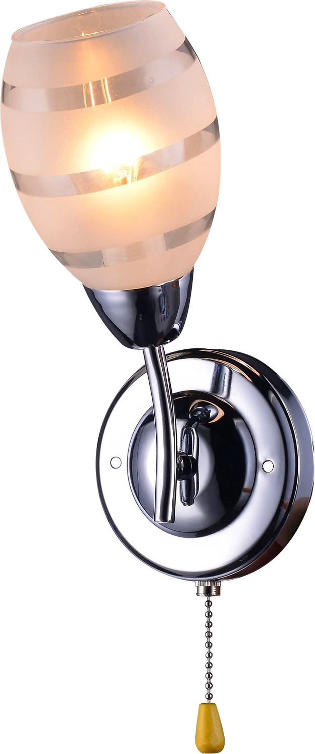 **Материалы изготовления:**Металлические элементы светильника - это прочная нержавеющая сталь с хромированным покрытием. К стальному рожку крепится элегантный плафон грушевидной формы, выполненный из благородного матового стекла. Элементы крепления изготовлены из металла. **Особенности:**- Цвет арматуры бра - хромированный "металлик": именно этот вариант чаще всего встречается в современном интерьере.