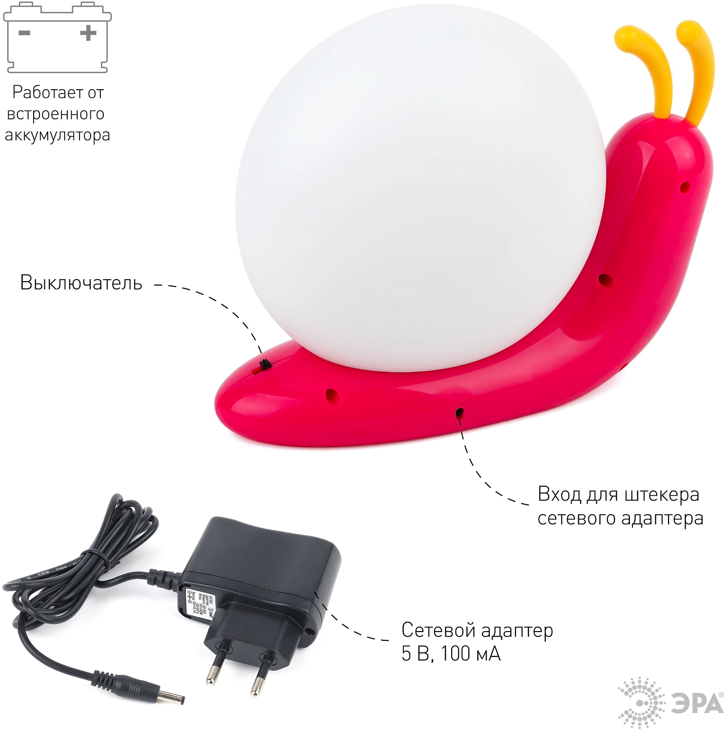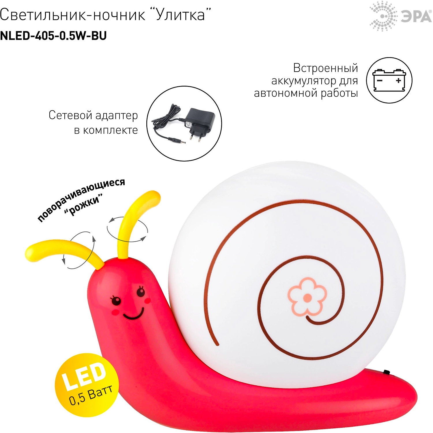 Ночник ЭРА NLED-405-0.5W-M Улитка малиновый