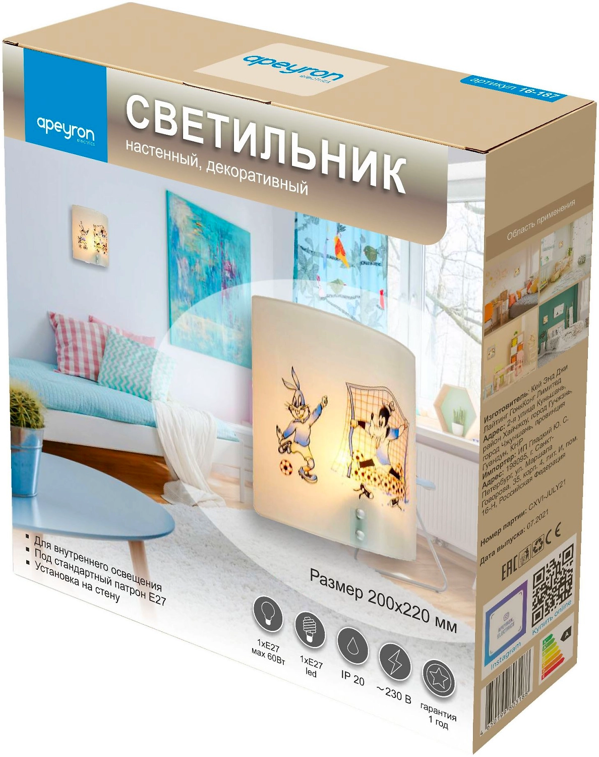 Светильник декоративный настенный 16-187 используется как основной или дополнительный источник внутреннего освещения для дома. Идеально подойдет для детской комнаты.