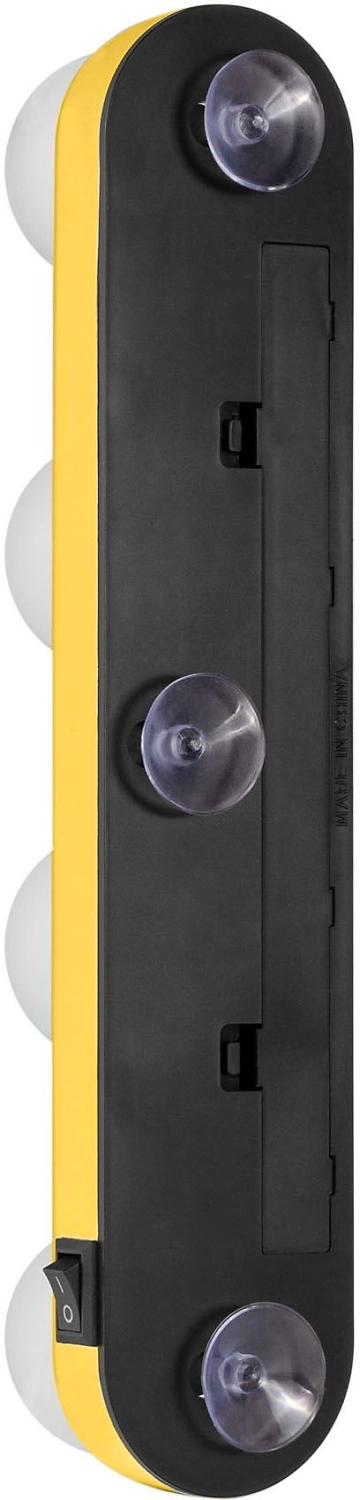 Rombica Beauty - портативный светодиодный светильник с яркими лампами и удобным креплением на присоски. Корпус прибора изготовлен из пластика желтого цвета. Модель работает от четырех батареек типа АА.