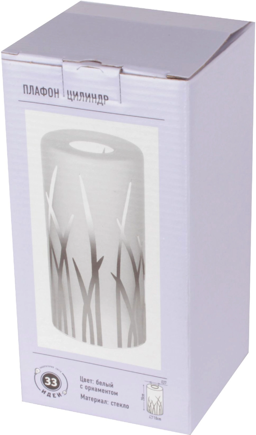 Плафон "33 Идеи" цилиндр белого матового стекла с ростительным орнаментом, диаметром 100 мм и высотой 200 мм