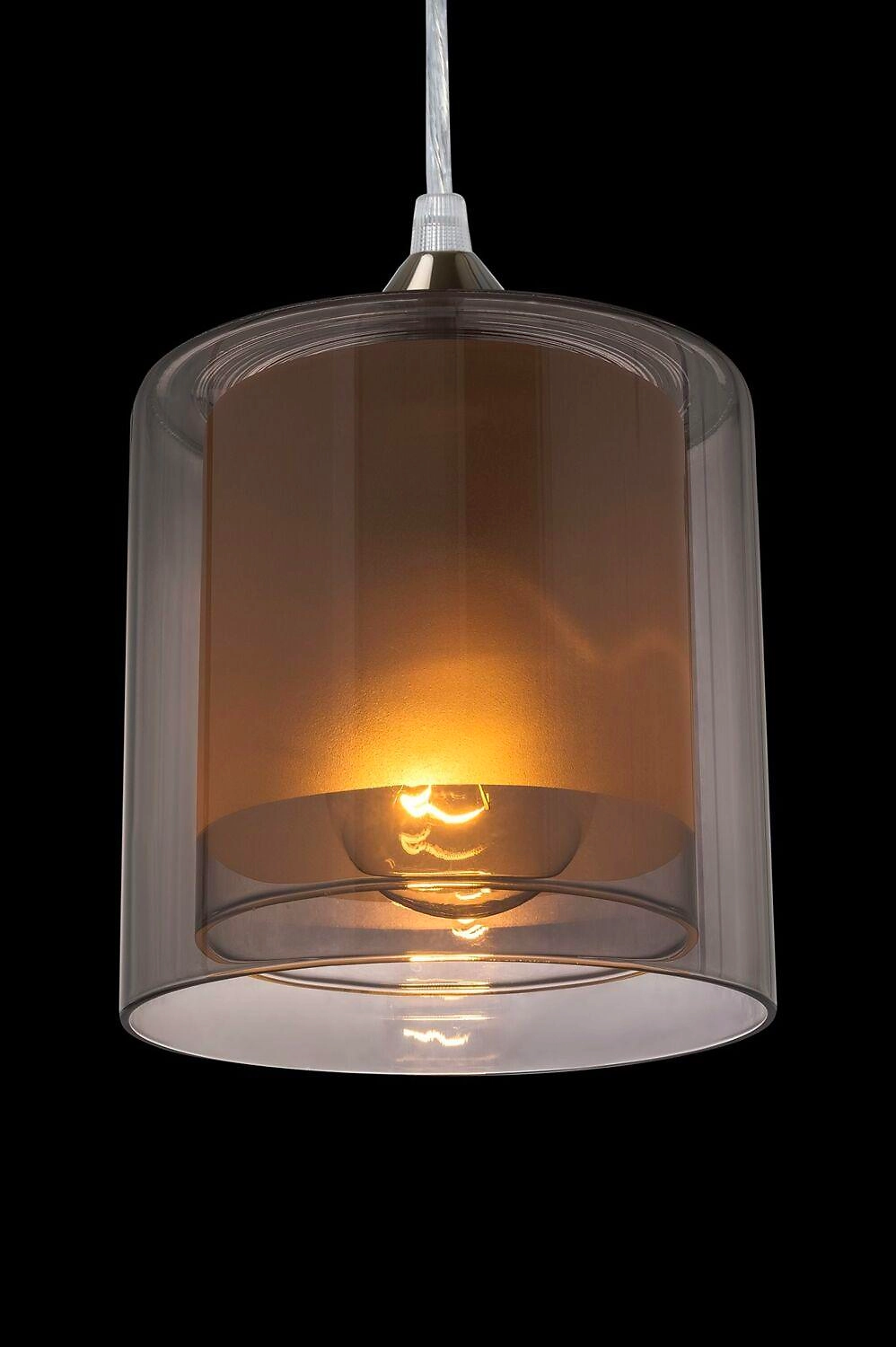 Ультрамодный плафон "33 Идеи" состящий из двух цилиндричесикх плафонов: внутренний - сатинированный с прозрачным краем, внешний - серого цвета с зеркальным эффектом. Такое сочетание дает эффект многослойности.