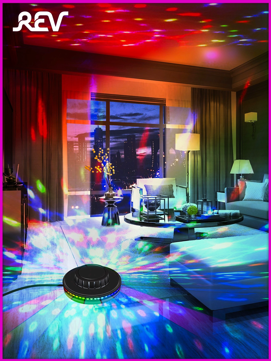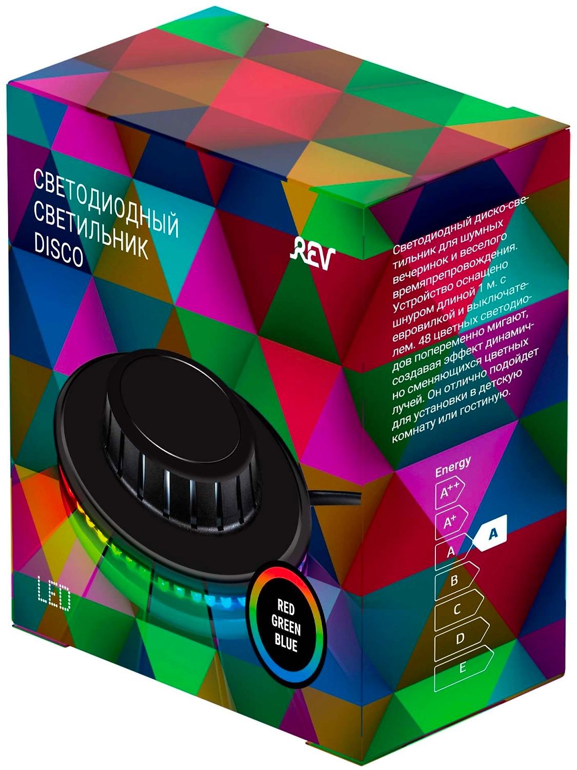 Светильник REV DISCO RGB устанавливается в детской и гостиной, подходит для организации вечеринок и веселого времяпрепровождения.