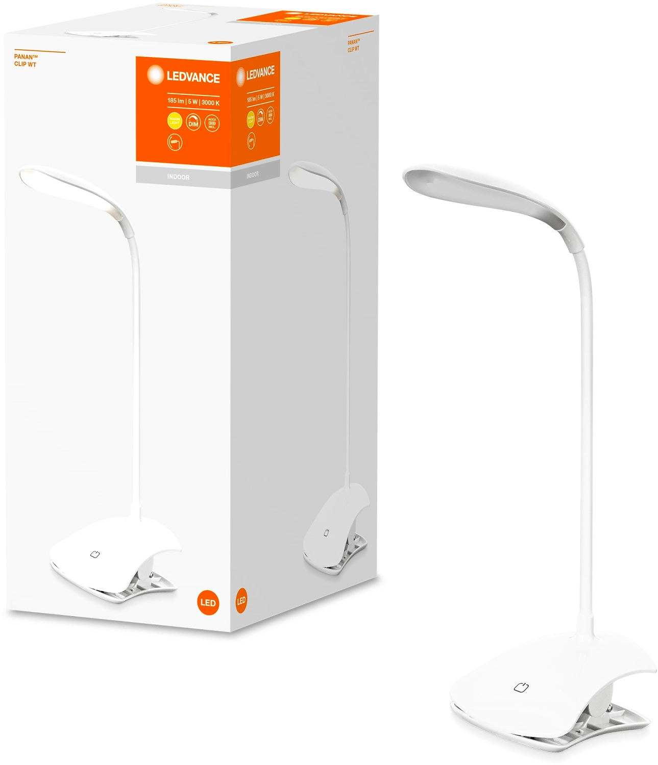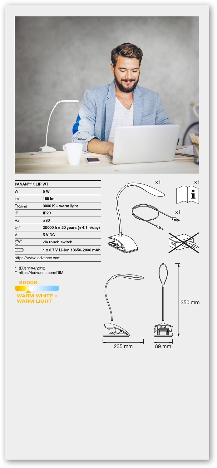 Лампа настольная LED 5 Вт диммер белая на прищепке 23,5x89x35 см