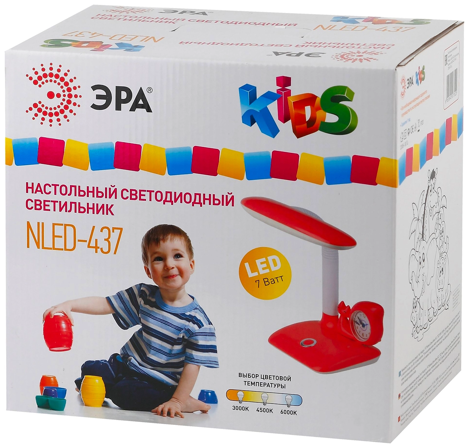 Светильник со светодиодами (LED) в качестве источников света. Выключатель на основании. Выбор цветовой температуры - 3 цвета: 3000К, 4500К, 6000К. Часы с крупным циферблатом на основании помогут ребенку лучше планировать занятия. Высота плафона регулируется гибкой стойкой, направление света регулируется поворотом плафона в любом направлении. Детский дизайн с часами в виде белочки.