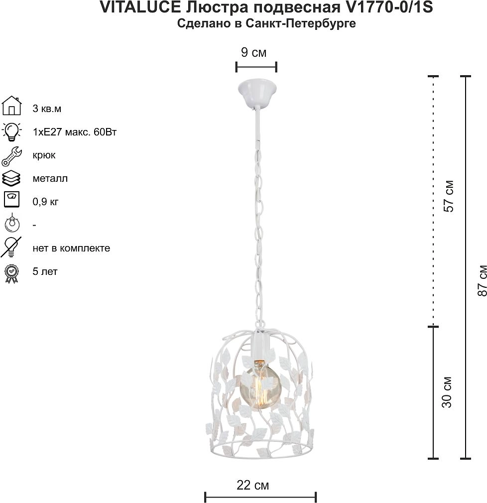 Подвес Vitaluce V1770-0/1S белый 1ХE27Х60Вт