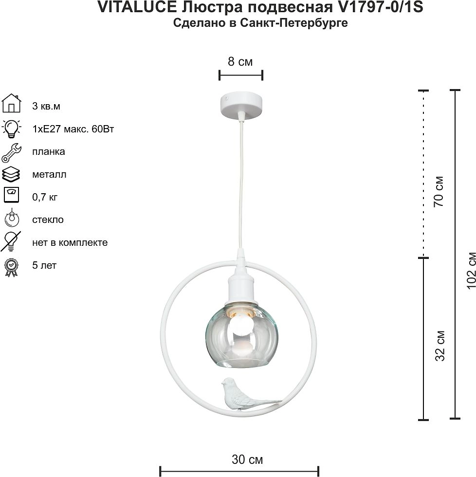 Подвес Vitaluce V1797-0/1S белый 1ХE27Х60Вт