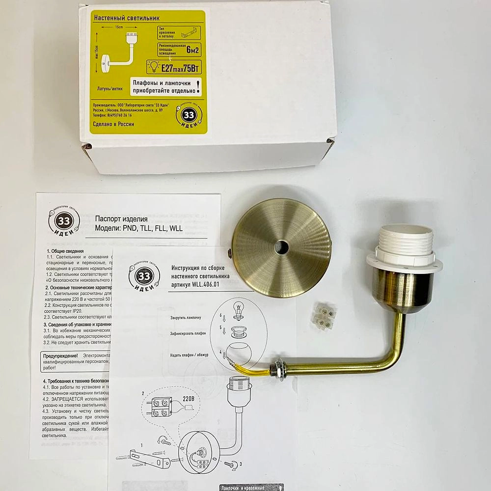 Основание настенного светильника "33 Идеи" (бра). Цвет основания - состаренная латунь