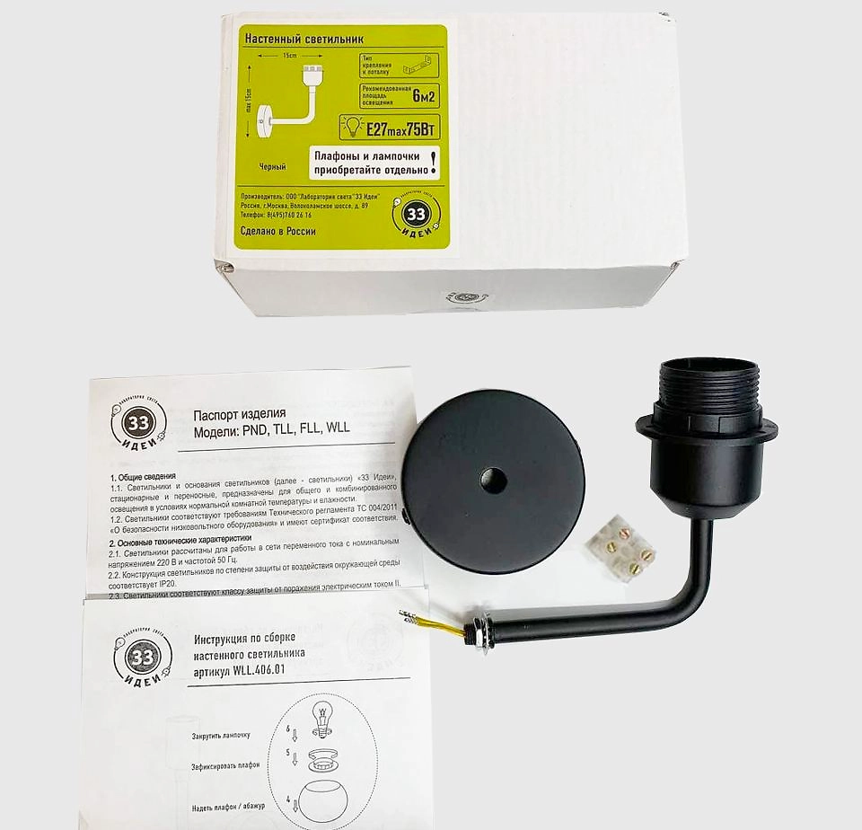 Основание настенного светильника "33 Идеи" (бра). Цвет основания - черный