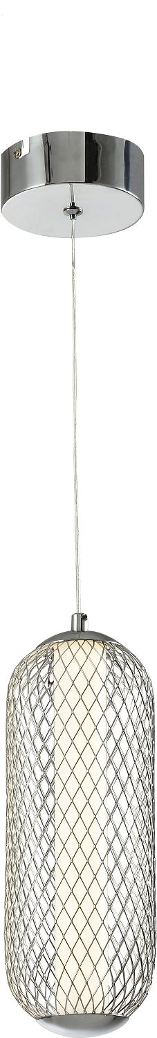 Подвесной светильник ESCADA 10249/1LED - квинтэссенция современного стиля и технологий у вас дома. Плафон выполнен из хромированной сетки, источником света служат светодиоды, заключенные в белый акриловый цилиндр. Ажурная конструкция и блеск металла придают светильнику воздушную легкость. Эксклюзивная люстра эффектно смотрится в интерьере, оформленном в стиле хай-тек, модерн, ар-деко, лофт, скандинавский, минимализм.