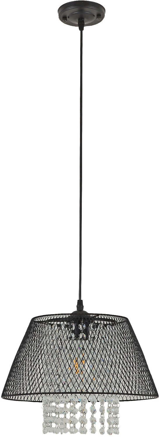 Подвес имеет распространенный тип цоколя E27, который подходит для энергосберегающих, светодиодных источников света и ламп накаливания. Конструкция светильника состоит из прочного металлического основания и стеклянного плафона. Сочетание жесткой сетки черного цвета и изящных подвесок придает люстре особый шарм и оригинальность. Такой дизайн актуален как для ультрасовременных решений, так и для оформления в винтажном стиле.