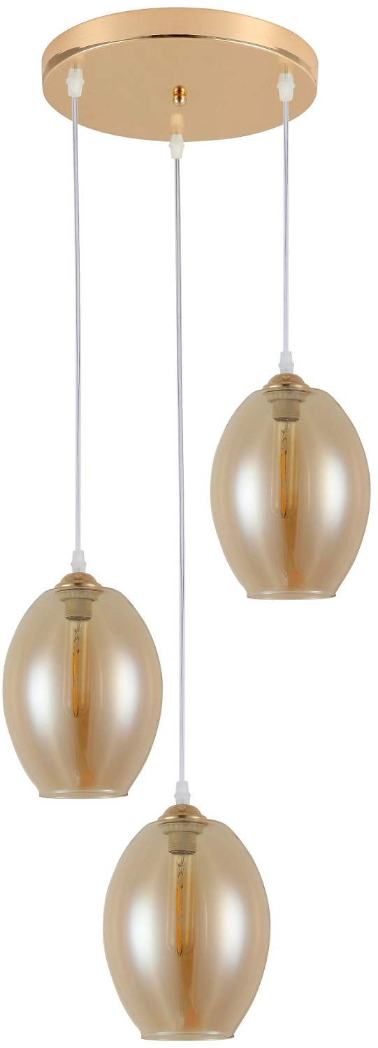 Потолочная подвесная люстра FORLI Ritter предназначена для освещения кухонь, гостиных, кафе и т.д. Подходит для акцентного освещения интерьеров в стиле лофт, винтаж. Люстра имеет три золотистых полупрозрачных плафона с цоколем Е27. Максимальная мощность устанавливаемой лампы - 60 Вт.