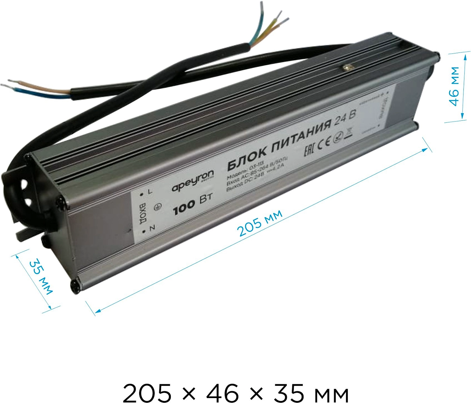 Блок питания для светодиодной ленты Apeyron 03-113 100 Вт 24 В 4,2 А IP67