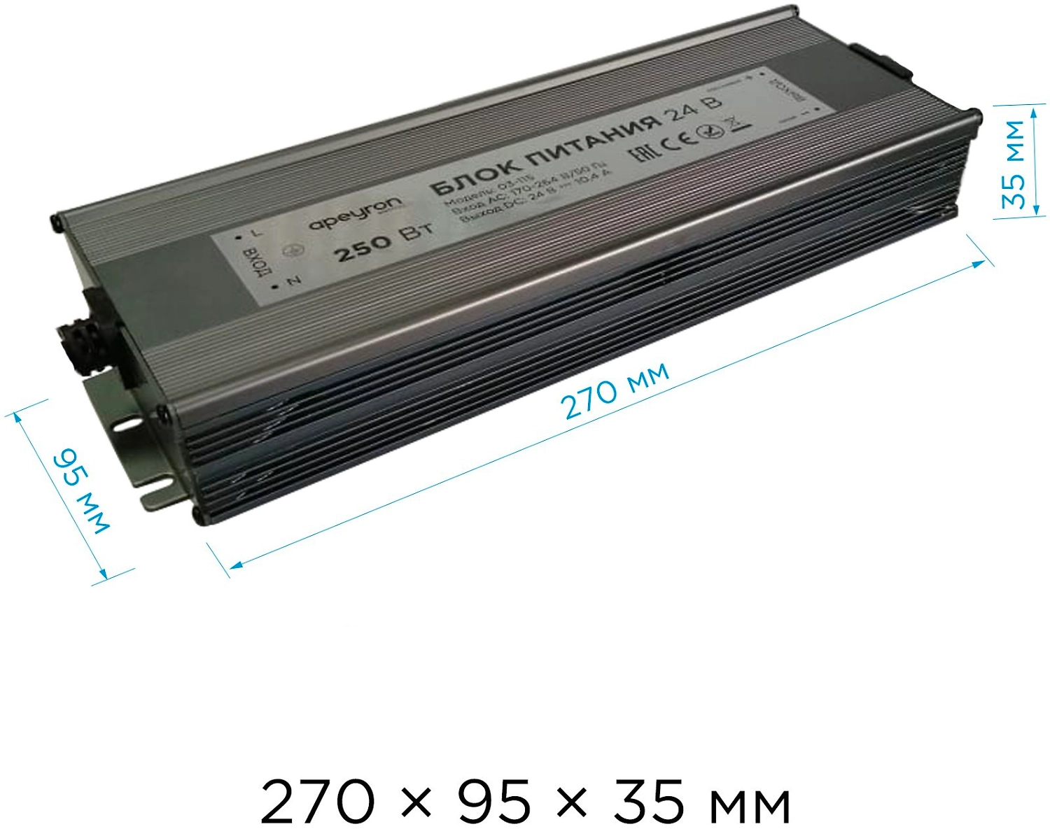 Блок питания для светодиодной ленты Apeyron 03-115 250 Вт 24 В 10,4 А IP67