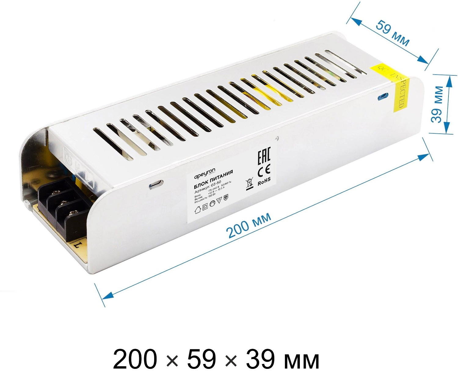 Блок питания для светодиодной ленты APEYRON 03-50 150 Вт 12 В 12,5 А IP20