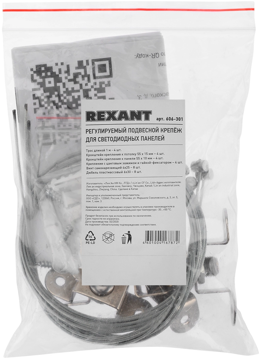 Комплект подвесных крепежей для светодиодных панелей, регулируемый.